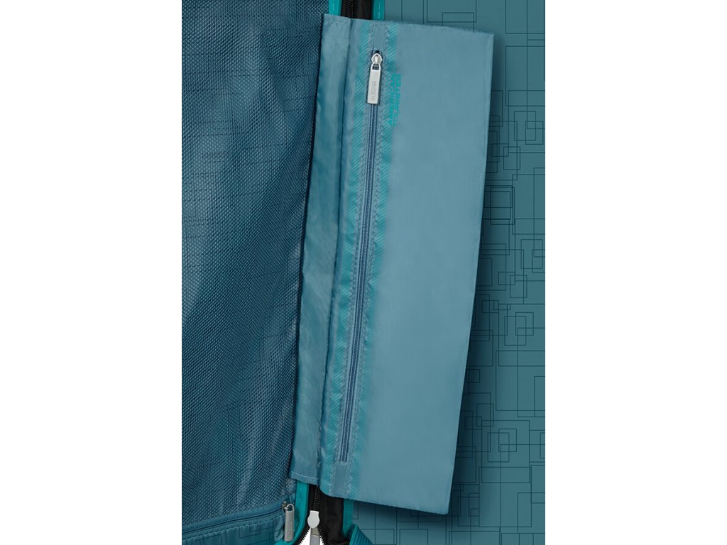 Cestovní kufr na kolečkách AMERICAN TOURISTER SPINNER67 EXP z kolekce AEROSTEP je rozdělen dělící přepážkou na zip s kapsou pro vetší pohodlí a organizaci na dvě části. V obou je křížové upínání pro dobrou fixaci oděvů. Je zde také jedna menší kapsa na zip. Kufr je opatřen nastavitelnou vysouvací rukojetí, ručním madlem a čtyřmi dvojitými kolečky pro všesměrný pojezd. Uzavírá se zipem, který uzamkne integrovaný zámek TSA. Pro dostatek místa je kufr rozšiřitelný.