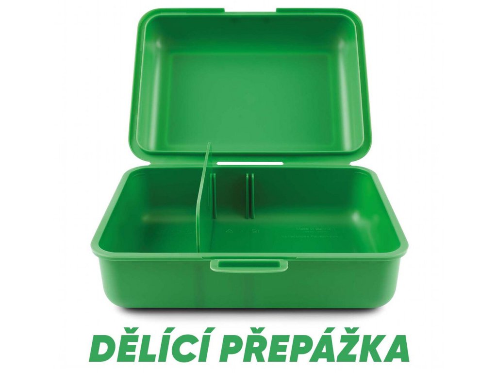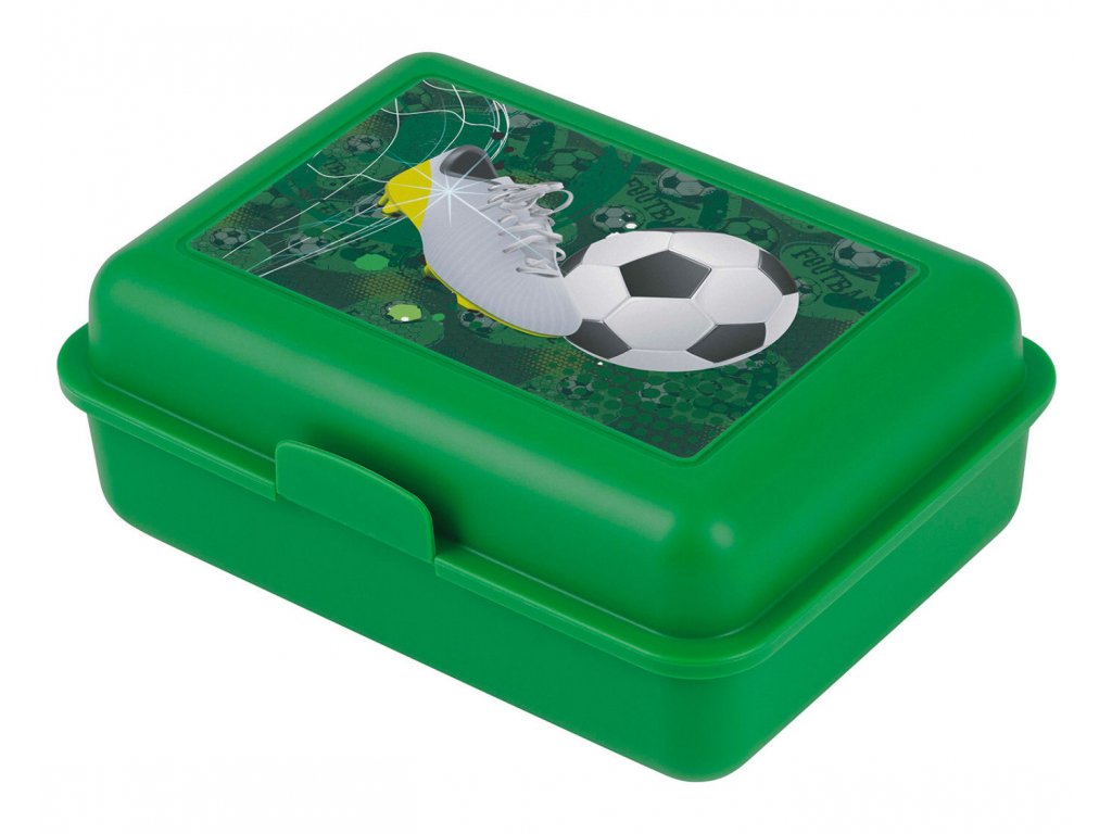 Svačinový plastový box české značky Baagl s motivem Fotbal v zelené barvě. Praktický box na svačinu zaručí dostatek prostoru pro dopolední i odpolední svačinku.