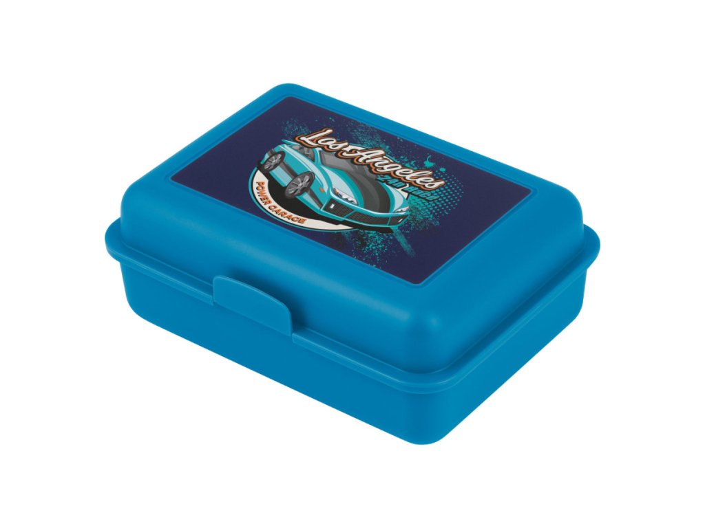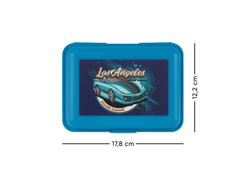 Stylový plastový box na svačinu české značky Baagl s motivem závodního auta. Dopřejte vašemu školákovi zdravou a bezpečnou svačinu. Box je vyroben bez BPA a obsahuje dělící přepážku.