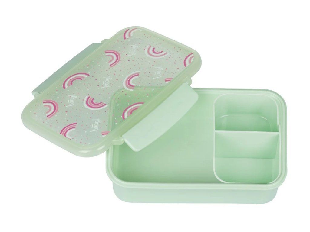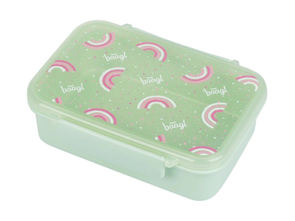 Svačinový plastový box české značky Baagl s motivem Duha v zelené barvě. Praktický svačinový box s motivem Duha a vyjímatelnými přihrádkami pro snadné oddělení jednotlivých jídel.