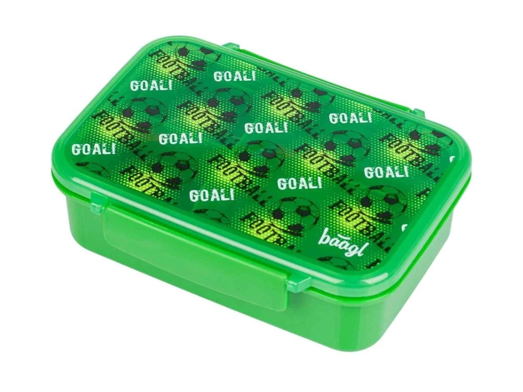 Svačinový plastový box české značky Baagl s motivem Fotbal v zelené barvě. Praktický svačinový box s fotbalovým motivem a vyjímatelnými přihrádkami pro snadné oddělení jednotlivých jídel.