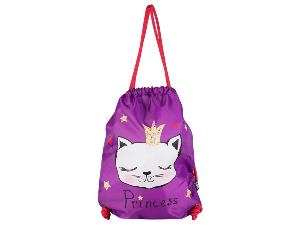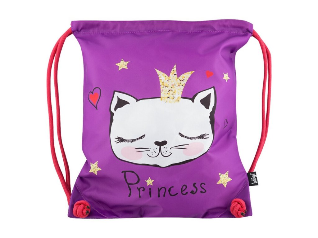 Praktický sáček na obuv s motivem kočky české značky Baagl ve fialové barvě. Moderní řešení úschovy a přenosu cviček nebo přezůvek, navíc s oblíbeným motivem.