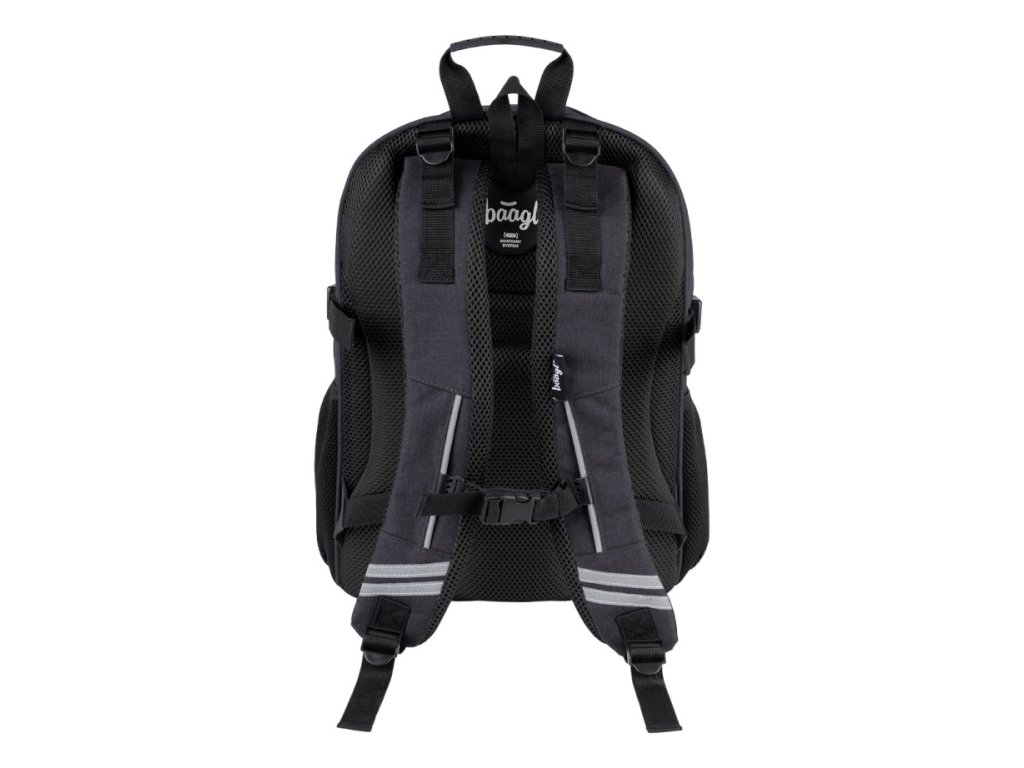 Moderní textilní školní batoh české značky Baagl v černé barvě s logem značky Baagl. Nechte vykročit vaše dítě vstříc školním lavicím stylově s tímto precizně, a do detailů zpracovaným batohem. Ergonomicky tvarovaná zadní část zajišťuje správné usazení batohu na zádech dítěte.