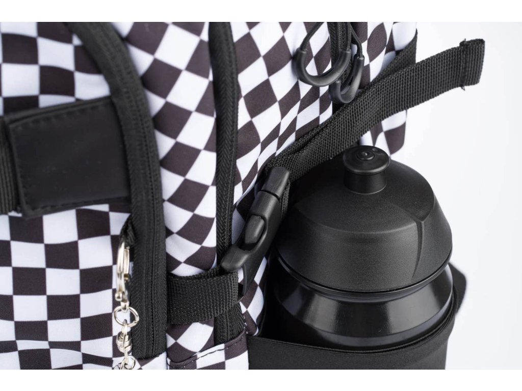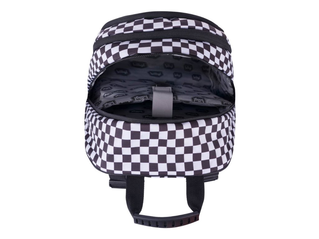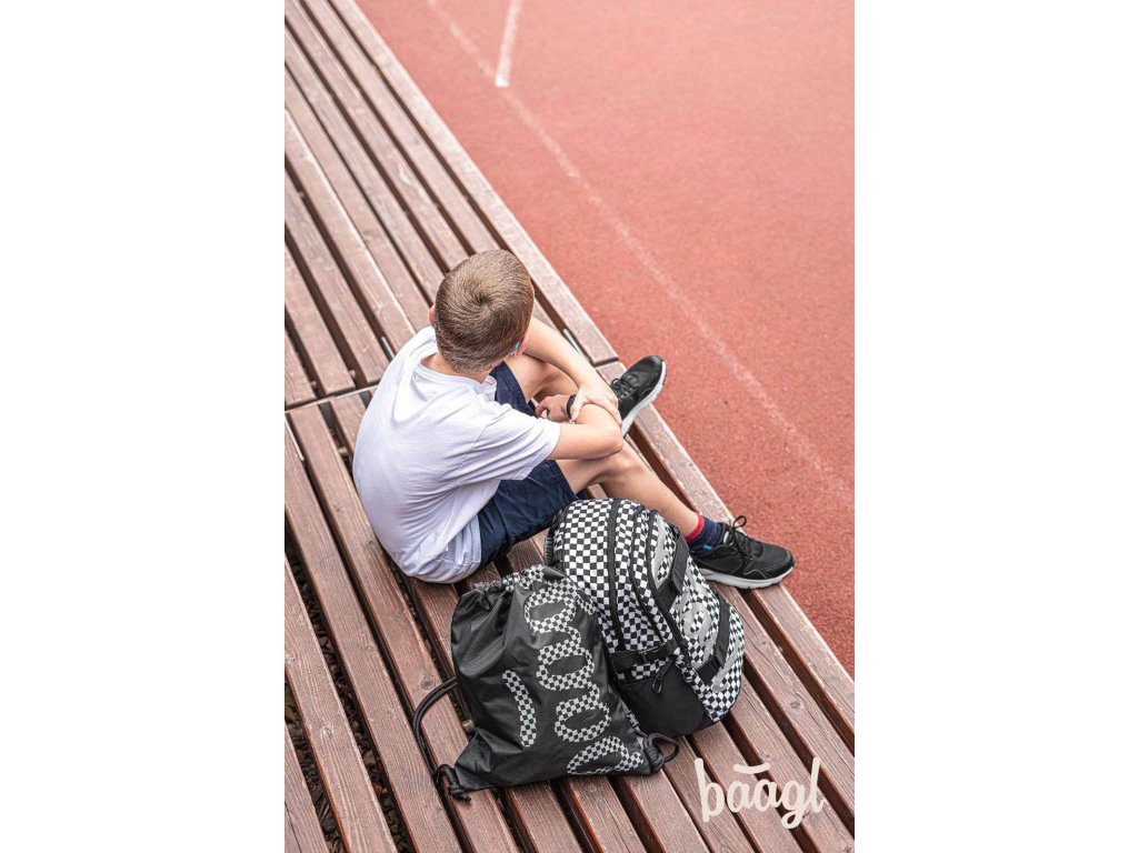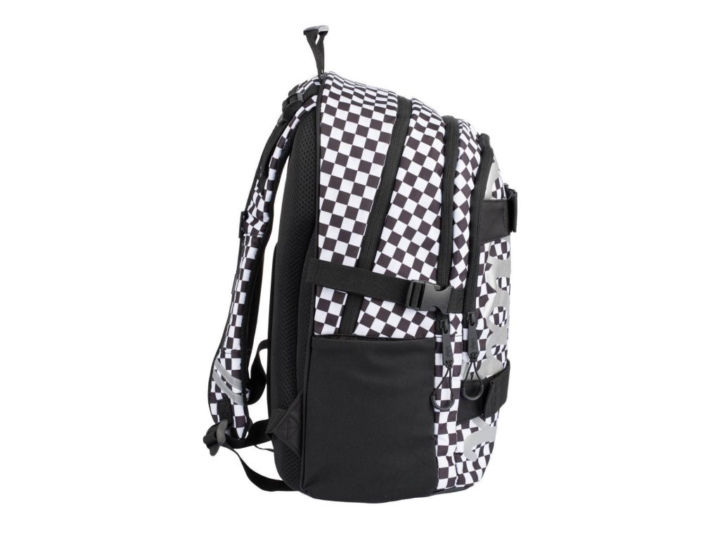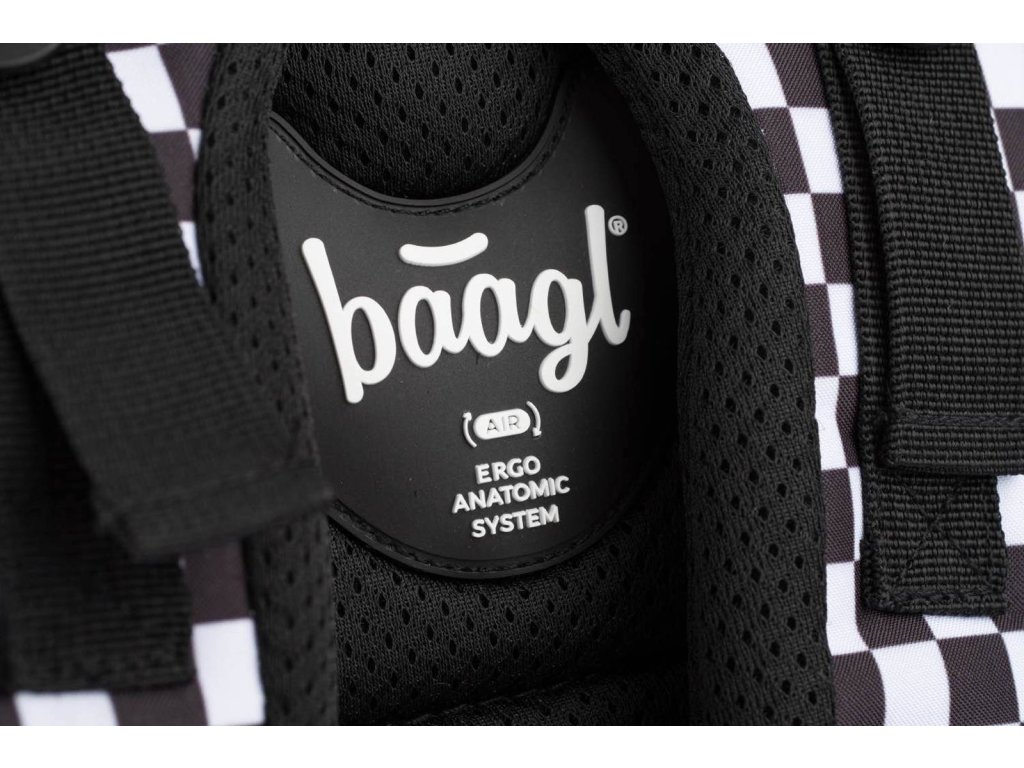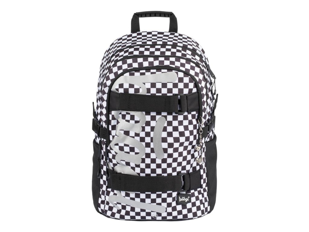 Školní batoh Skate Ska české značky Baagl s reflexním logem BAAGL se vzorem černobílé kostky. Batoh je vhodný pro žáky od 3. třídy ZŠ.