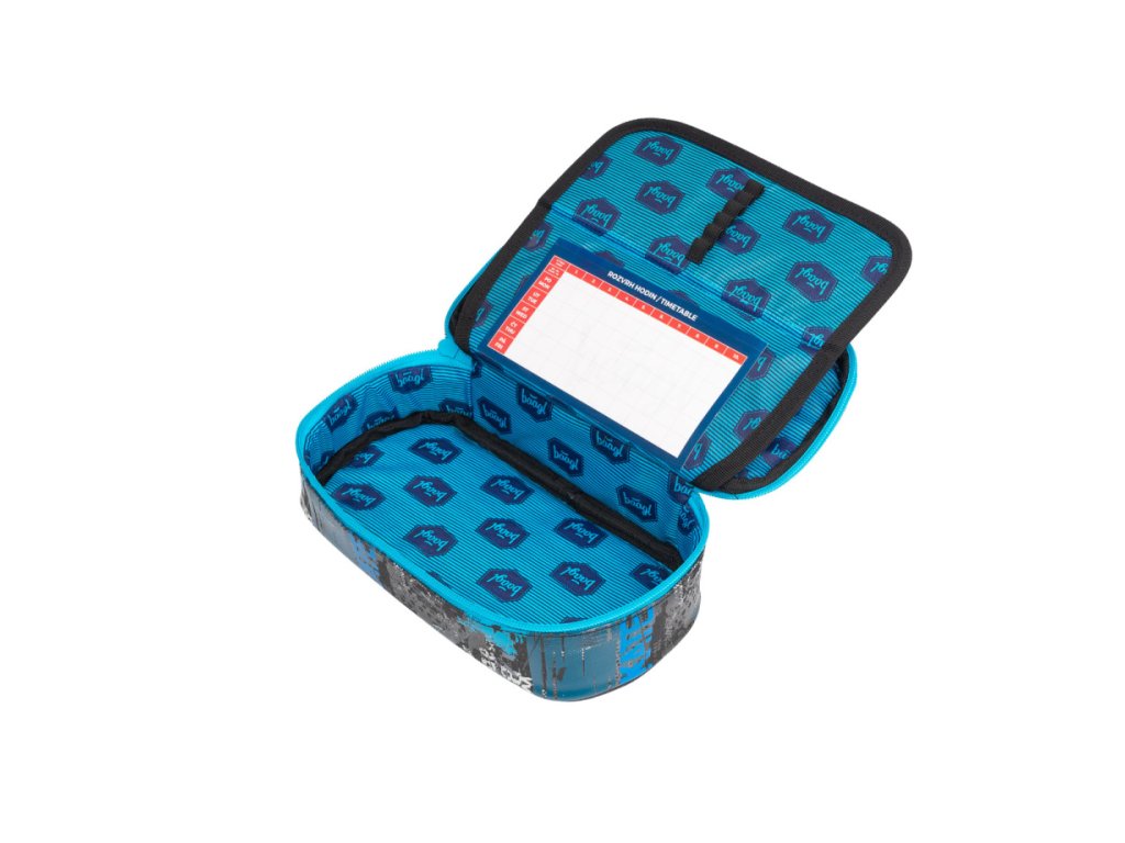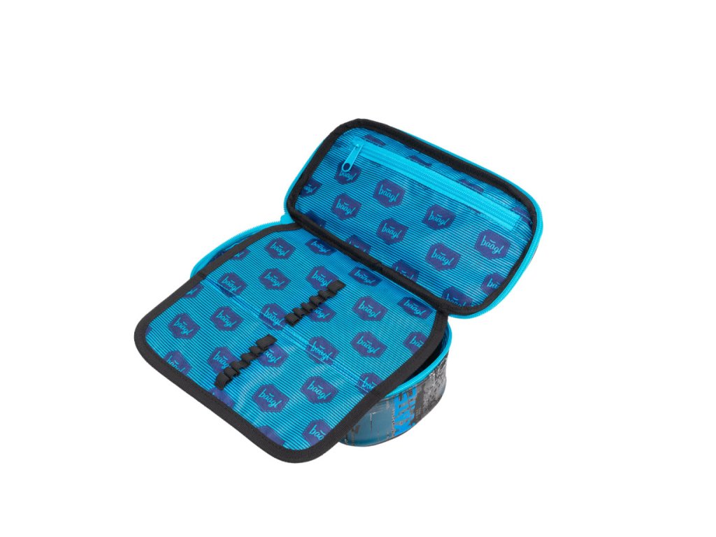 Stylový penál na zip české značky Baagl v modré barvě s nápisem Freestyle. Penál je opatřen dvojitou výklopnou chlopní, uvnitř je kapsa na zip a také kapsa pro rozvrh školních hodin. Nechte vykročit vaše dítě vstříc školním lavicím stylově.