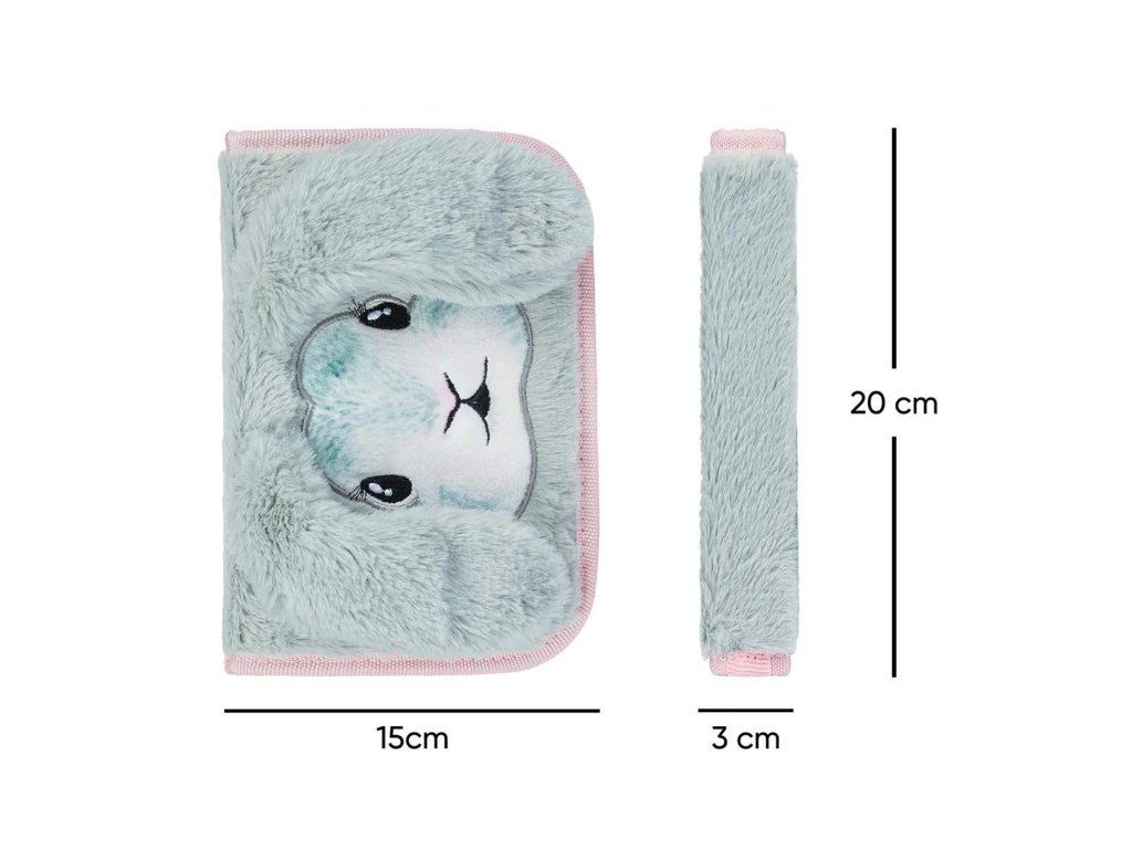 Školní penál klasik Bunny české značky Baagl v šedé barvě dvouchlopňový penál s příjemným plyšovým povrchem a ušatým králíčkem. Nechte vykročit vaše dítě vstříc školním lavicím stylově s tímto jednoduchým dvouchlopňovým penálem, který se navíc i snadno otevírá díky kvalitnímu zipu.