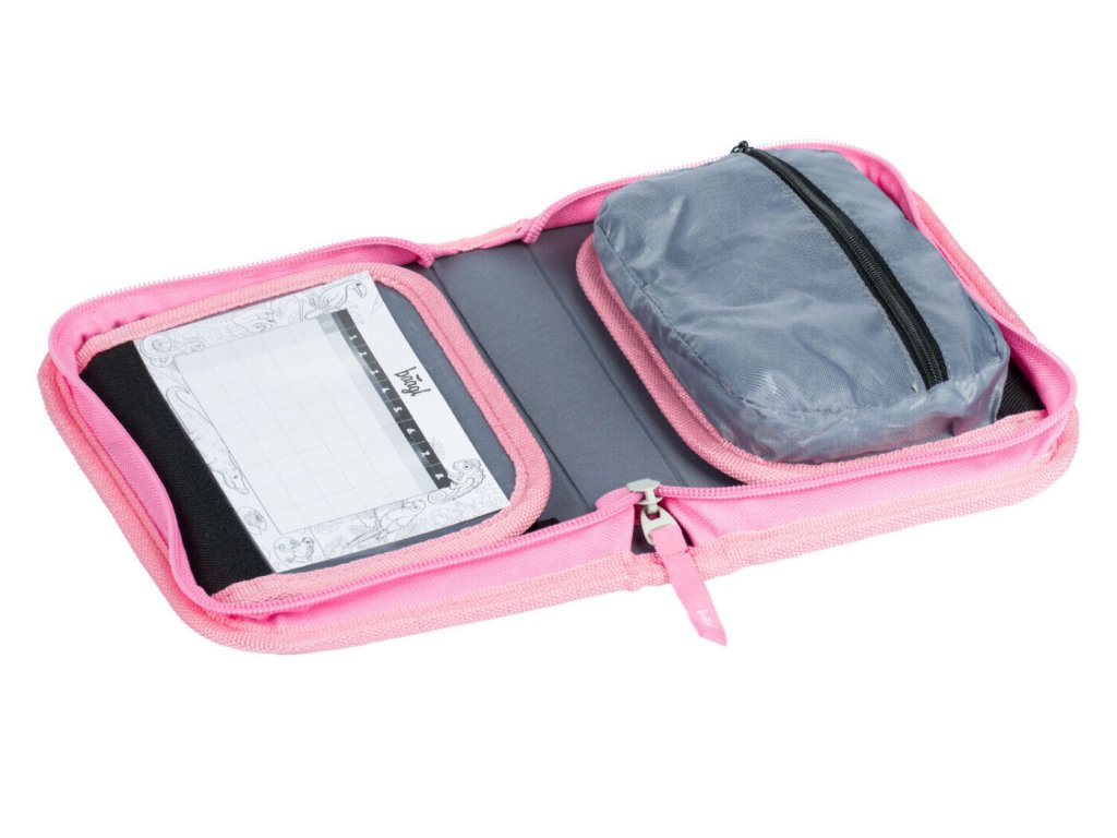 • Uvnitř aktovky je průhledná kapsa na rozvhr a vnitřní organizér umožňující rovnoměrné rozložení hmotnosti, doplněný gumičkou pro fixaci.