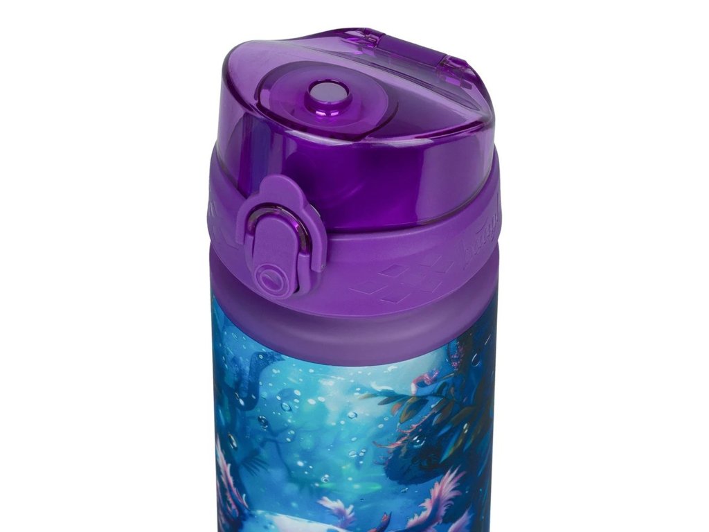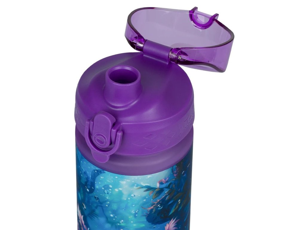 Uzamykatelné víčko nepropustí ani kapku nápoje a zaručuje jednoduché a intuitivní používání. K láhvi je připevněné také poutko pro pohodlné nošení v ruce.