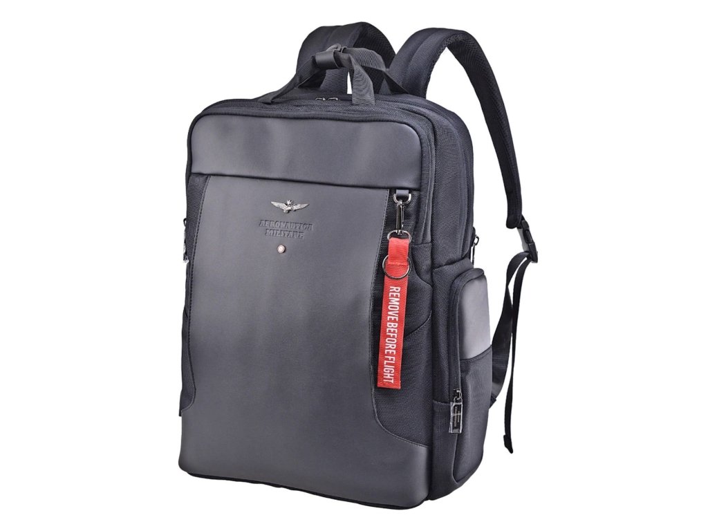 Batoh v oblíbené černé barvě italské značky Aeronautica Militare série Bolt, vhodný pro manažery i muže, kteří chtějí být elegantní a potřebují mít sebou notebook.
