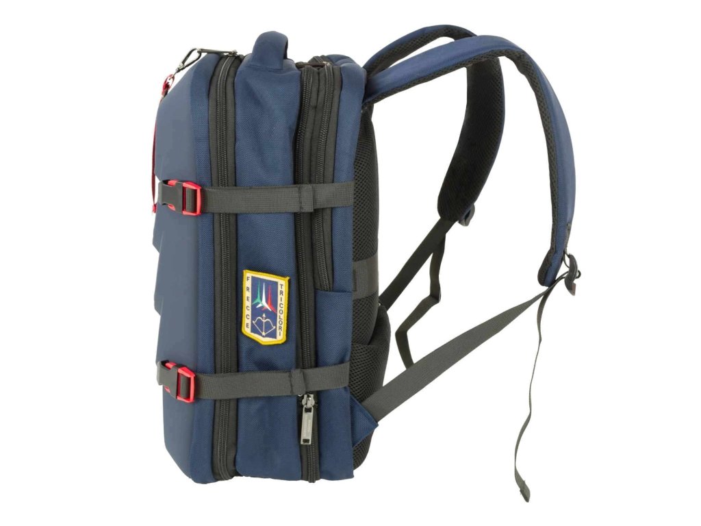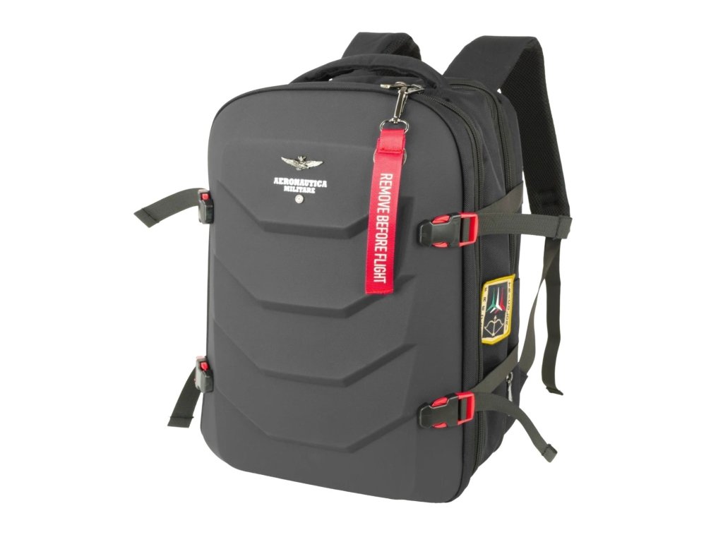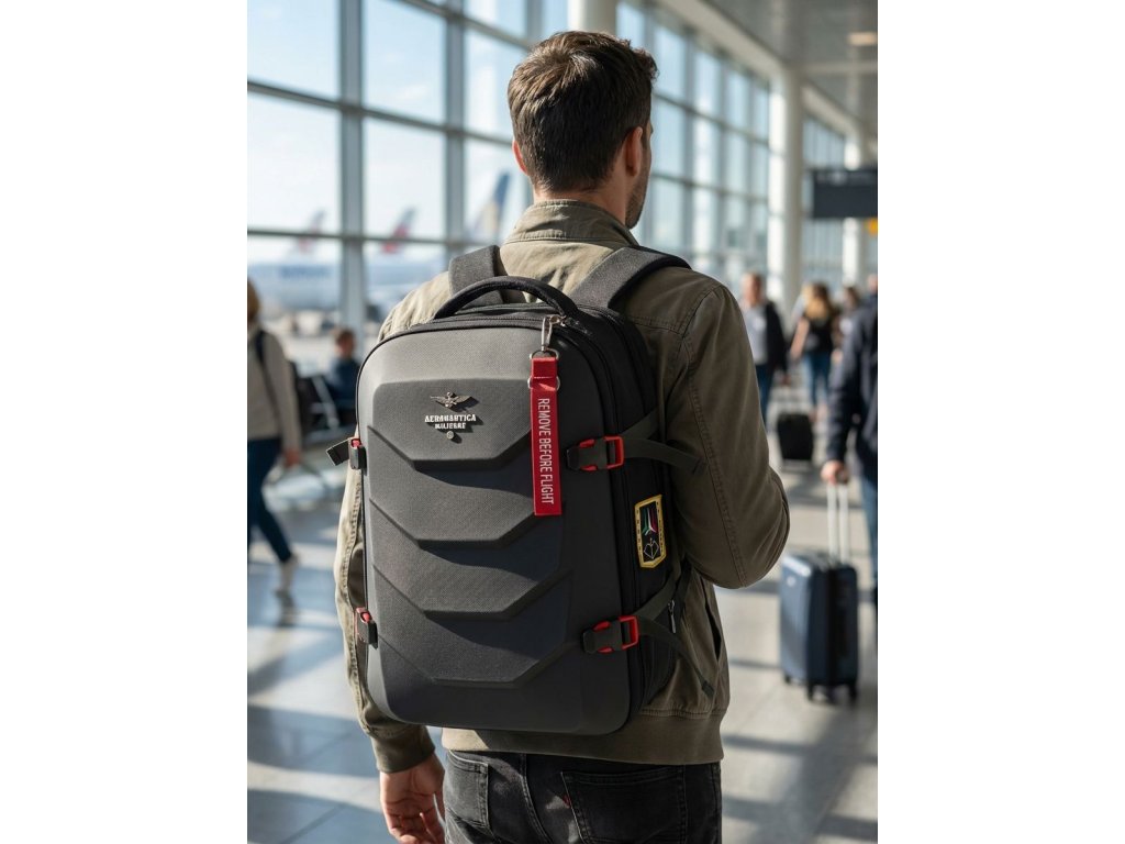 Městský elegantně-sportovní batoh od prestižní značky Aeronautica Militare série Patch Comby v oblíbené černé barvě. Batoh Aeronautica Militare Patch Comby je stavěný pro lidi, kteří chtějí mít věci bezpečně uložené, přehledně srovnané a pořád pod kontrolou. Na první pohled působí čistě a pevně, ale jakmile ho otevřeš, je jasné, že je navržený hlavně prakticky. Kombinace pevné přední ABS skořepiny a textilních částí dává batohu výhodu v ochraně obsahu – notebook, dokumenty nebo elektronika jsou lépe chráněné proti nárazům. Hlavní komora nabízí dostatek místa na každodenní výbavu i věci na kratší cestování, zipové kapsy pomáhají udržet pořádek. Boční kompresní popruhy umožňují batoh stáhnout podle toho, kolik zrovna neseš, takže se nehoupe a drží tvar. Polstrovaná záda a ramenní popruhy zajistí pohodlí i při delším nošení. Typické detaily Aeronautica Militare – nášivky a ikonický červený přívěsek „Remove Before Flight“ – dodávají batohu výrazný, ale stále civilní vzhled.