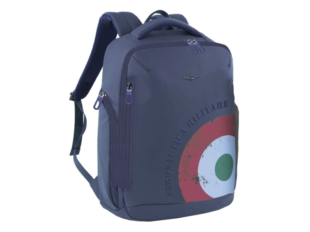 Městský elegantně - sportovní batoh od prestižní značky Aeronautica Militare série Runway v modré barvě. Komfortní rozměry zaručují příjemné každodenní nošení. Moderní batoh z technického pogumovaného materiálu je perfektní volbou pro ty, kteří hledají spojení funkčnosti, sportovní elegance a italského stylu. Tento stylový doplněk ztělesňuje jedinečný charakter značky Aeronautica Militare a je navržen tak, aby odolal nepříznivým povětrnostním podmínkám. Na horní části najdete decentní logo značky, zatímco spodní část zdobí výrazná grafika s motivem italské trikolóry a nápisem Aeronautica Militare, které podtrhují její exkluzivní vzhled.