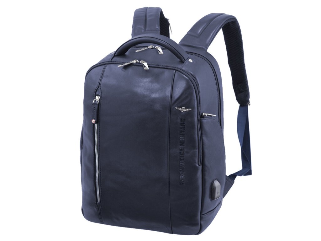 Batoh kožený v modré barvě italské značky Aeronautica Militare série Thunder, vhodný pro manažery i muže, kteří chtějí být elegantní a potřebují mít sebou notebook.