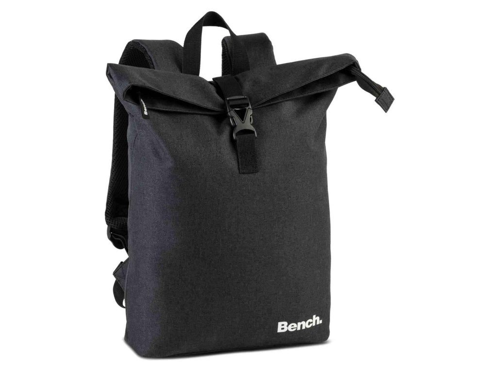Batoh anglické značky Bench Classic roll-top mini v oblíbené černé barvě, velmi kvalitní novinka s módním a praktickým zavíráním nejen pro mladistvé, vhodné pro každý den i na cestování.