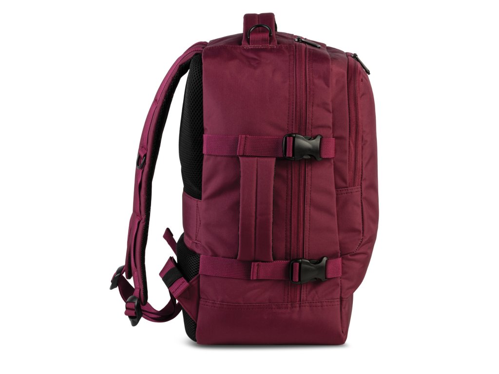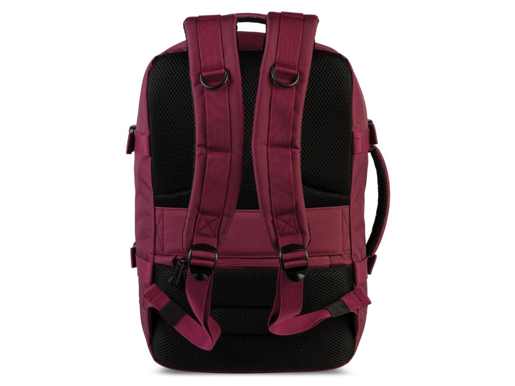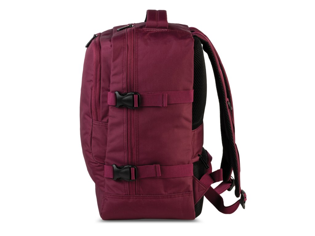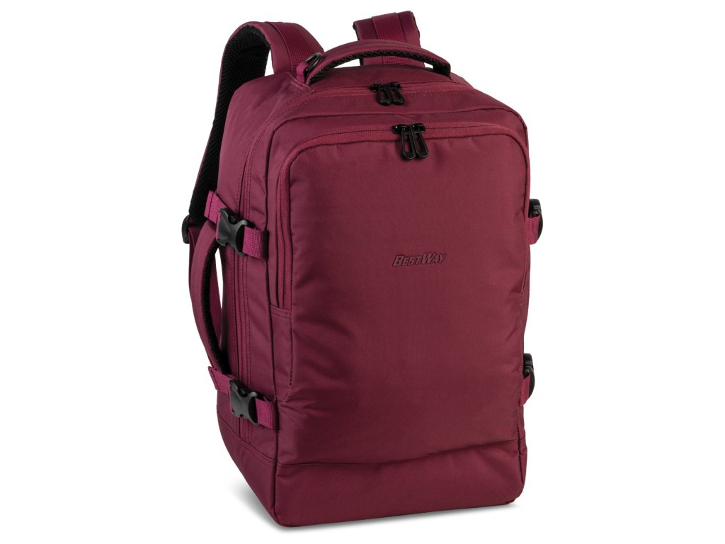 Cestovní multifunkční textilní batoh německé značky Bestway cabin pro ve vínové barvě. Toto palubní zavazadlo si můžete vzít s sebou do letadla, jak vyžaduje společnost Ryanair. Má rozměry, které akceptuje většina leteckých společností.