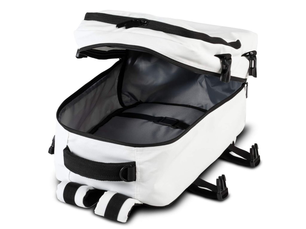 Batoh je vyroben z odolného 900D polyesteru s vodoodpudivou úpravou, která ochrání obsah před lehkým deštěm a vlhkostí. Díky tomu je skvělou volbou do proměnlivého počasí při cestování.
