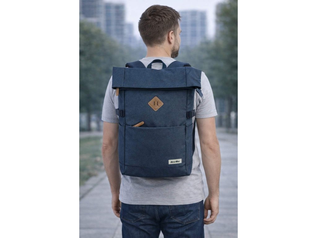 Batoh značky Bestway série city roll-top v tmavě modré barvě, velmi kvalitní novinka s módním a praktickým zavíráním nejen pro mladistvé, vhodné pro každý den i na cestování.