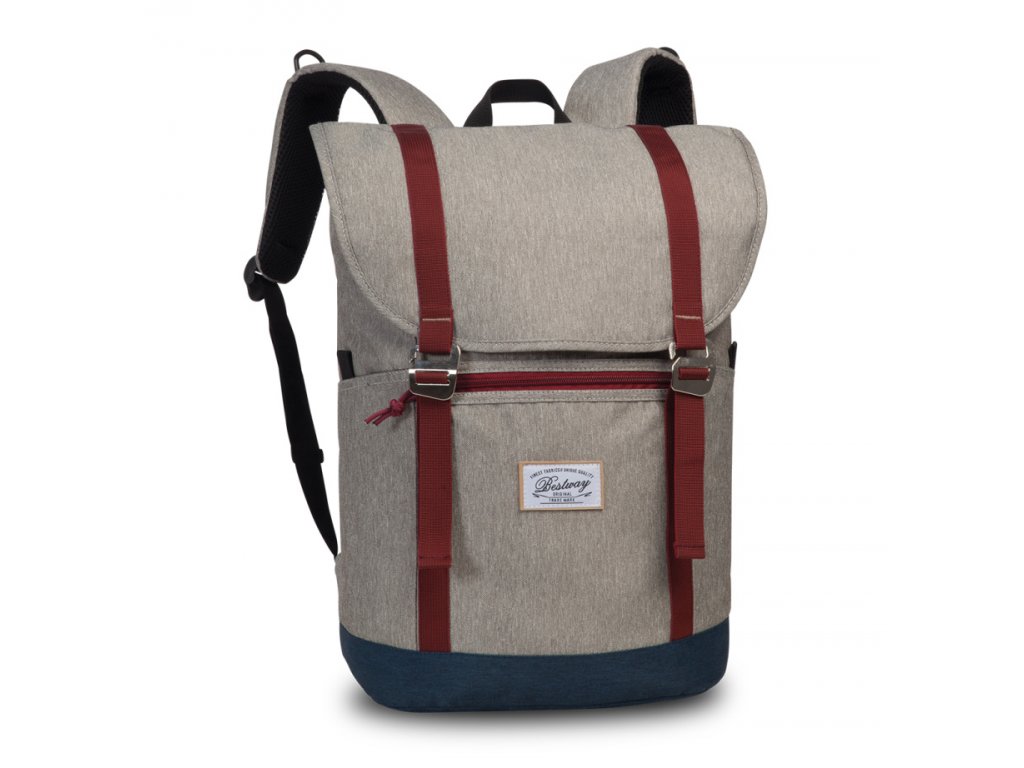 Moderní textilní batoh s přezkami německé značky Bestway v šedé barvě v kombinaci s vínovými detaily. Tento městský batoh skvěle využijete i při volnočasových aktivitách. S sebou si můžete bez obav přibalit i notebook, jelikož batoh obsahuje polstrovanou přihrádku.