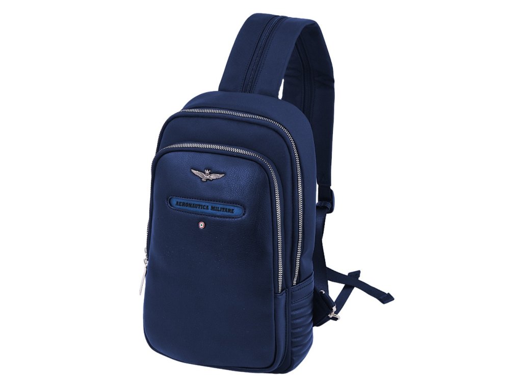 Městský elegantně - sportovní batoh od prestižní značky Aeronautica Militare série Sky v modré barvě vyznačující se kombinací dvou materiálů, imitace kůže a technické tkaniny, a také přední kapsou na smartphone s logem Aeronautica Militare. Batoh lze nosit přes jedno rameno nebo klasicky. Komfortní rozměry zaručují příjemné každodenní nošení. Vhodný i pro nejnáročnější zákazníky díky prvotřídnímu zpracování.