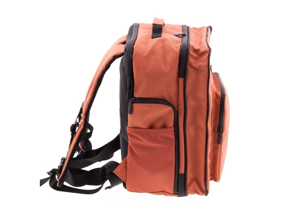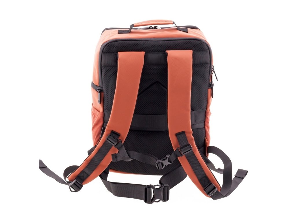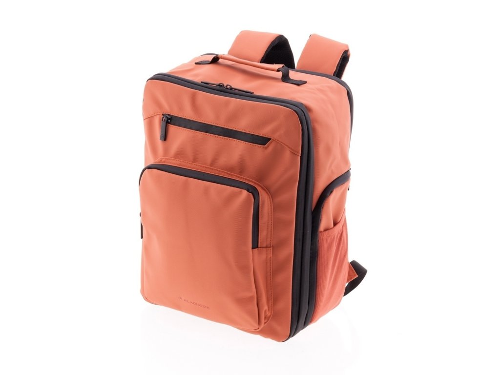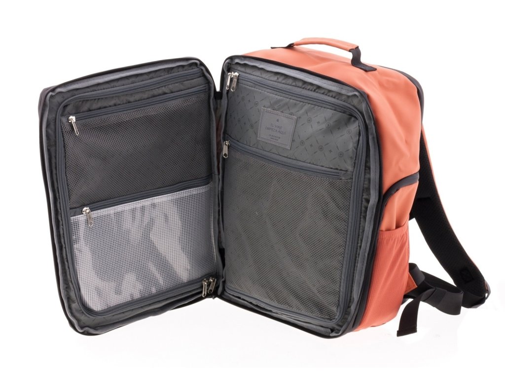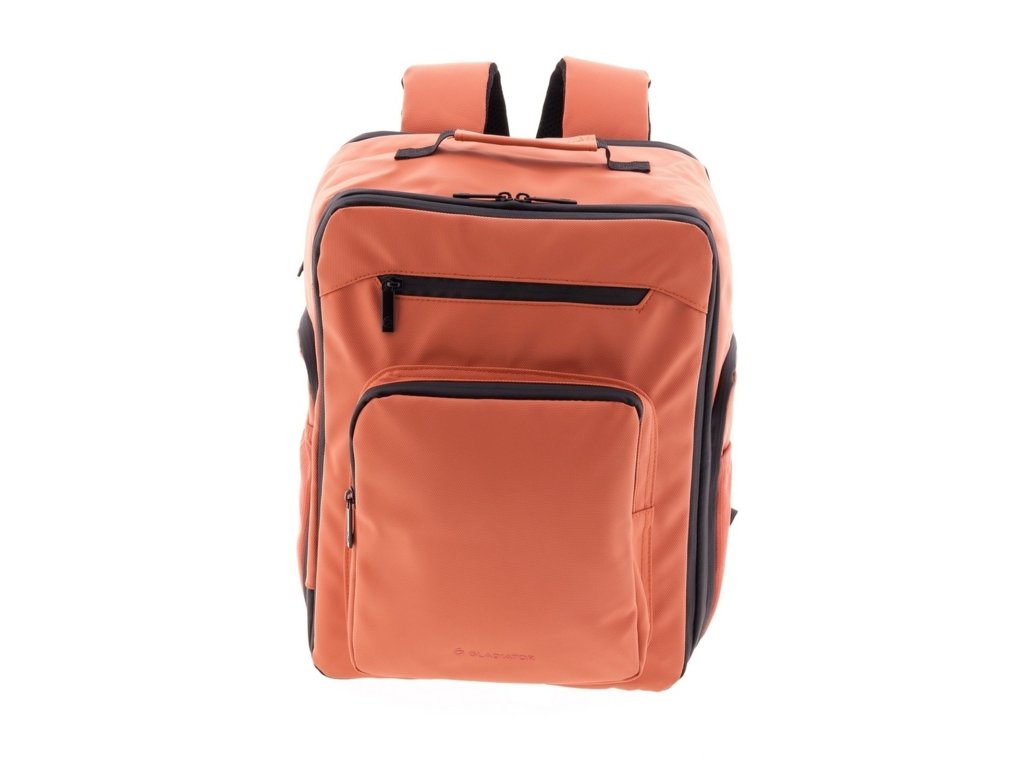 Moderní batoh španělské značky Gladiator série Flow v terakotově oranžové barvě. Tento batoh vyhovuje parametrům nízkonákladové letecké společnosti Ryanair, Wizzair, Vueling, Volotea a Transavia.