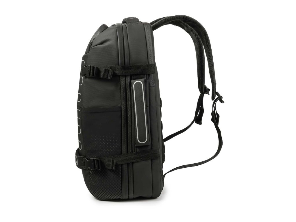 Moderní batoh velikosti L belgické značky Hedgren série Comby Performance Trip v oblíbené černé barvě. Největší batoh z řady Comby je přesně to, co potřebujete na delší cesty. Jeho vyhrazená přihrádka na oblečení se dá roztáhnout a vejde se do ní o pár kusů oblečení, a to díky balicím popruhům a dělicí přepážce na zip. Má plné otevírání, takže si své oblečení snadno uspořádáte a uložíte si ho. Comby Performance nabízí vše, co má nejprodávanější kolekce Comby SS, a ještě víc! Pokud chcete doslova i obrazně dojít o kousek dál, Comby Performance by mohl být vaším ideálním společníkem. Tato vysoce výkonná kolekce obsahuje odolnou, recyklovanou tkaninu s vysokou vodoodpudivou úpravou, ochranné zipové pásky a reflexní detaily pro lepší viditelnost na silnici.