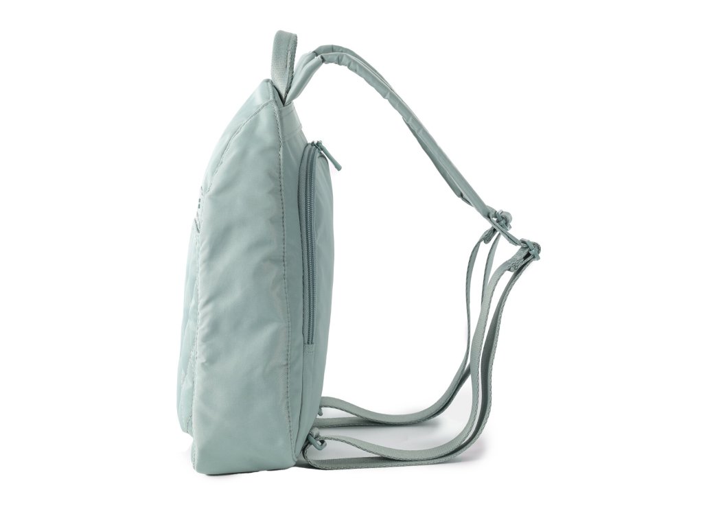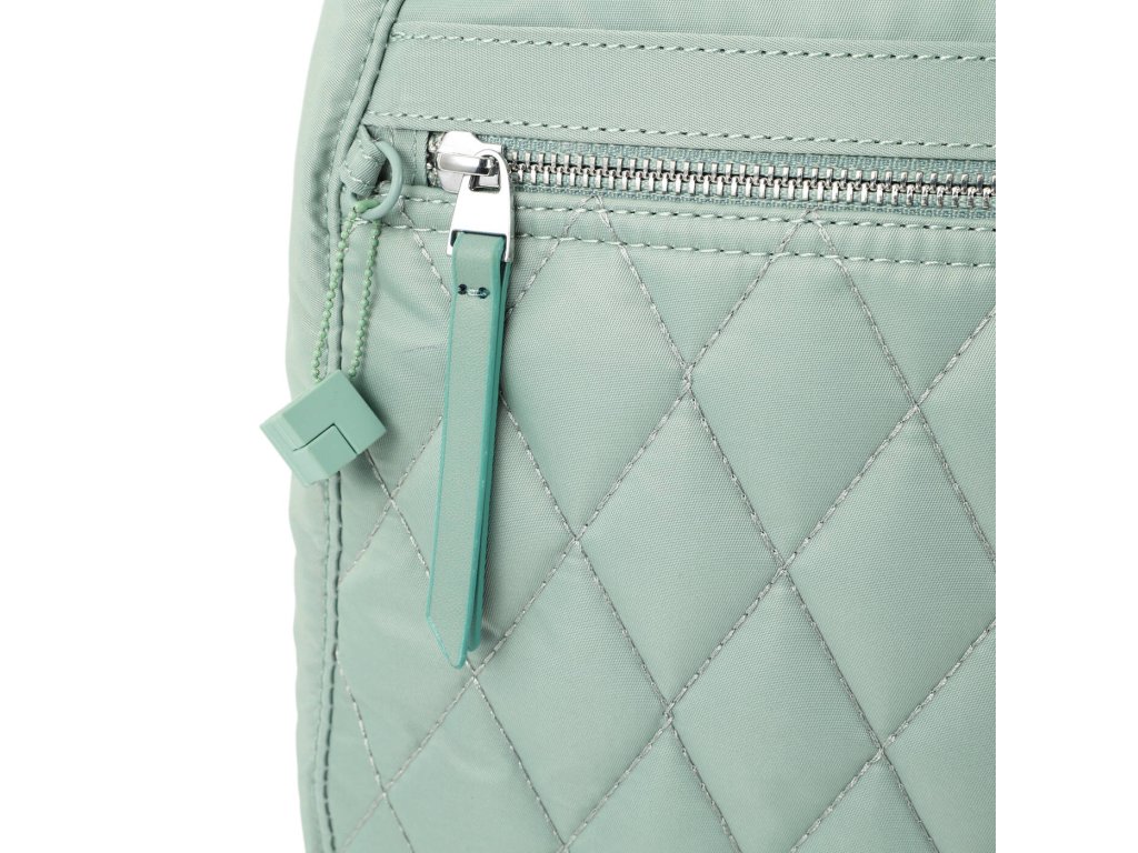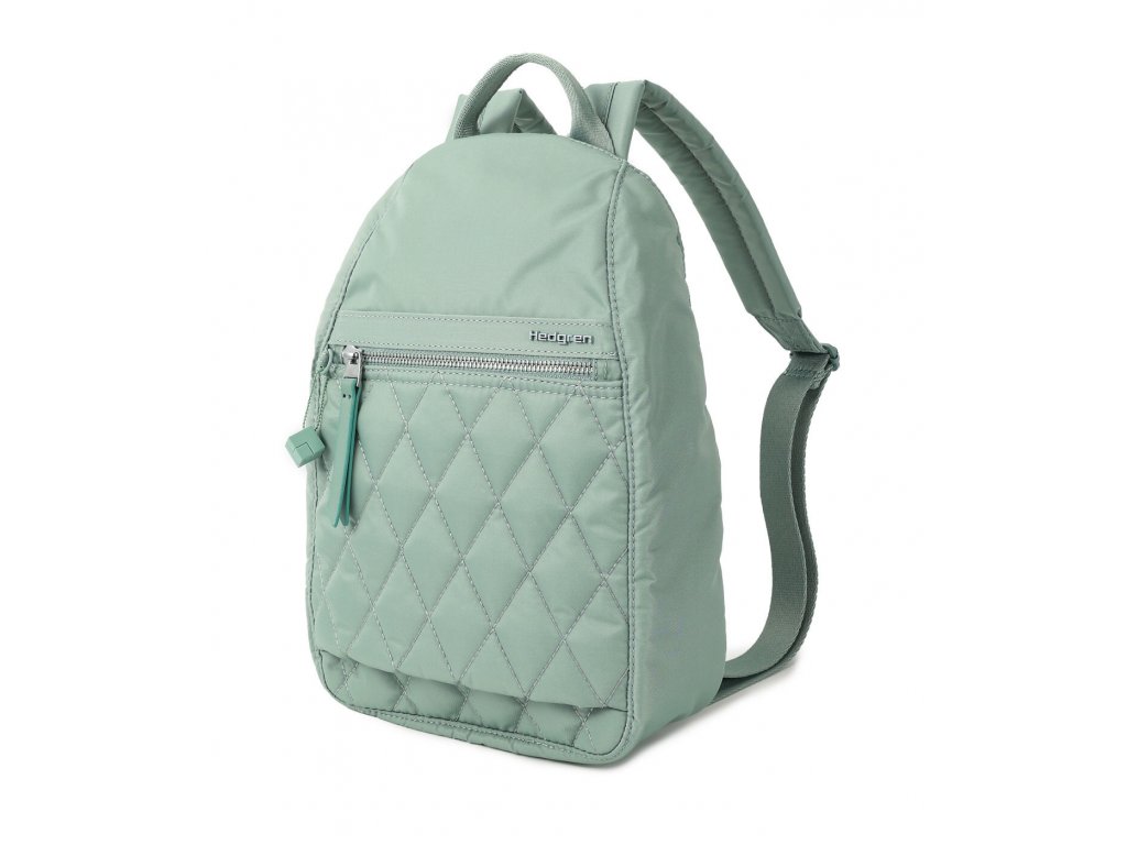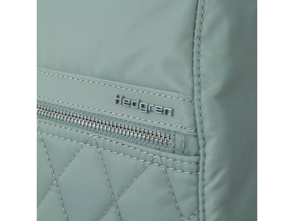 Batoh dámský Hedgren Inner city v zelené šalvěj barvě s prošíváním vhodný pro denní nošení místo kabelky, aby vás nebolela záda.