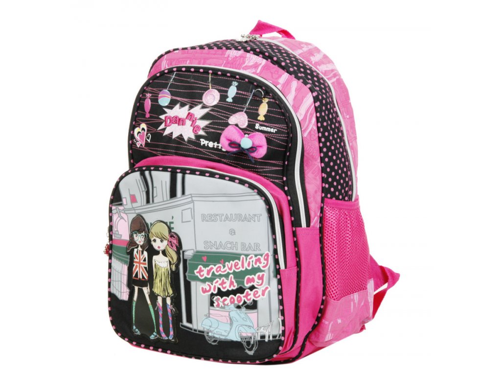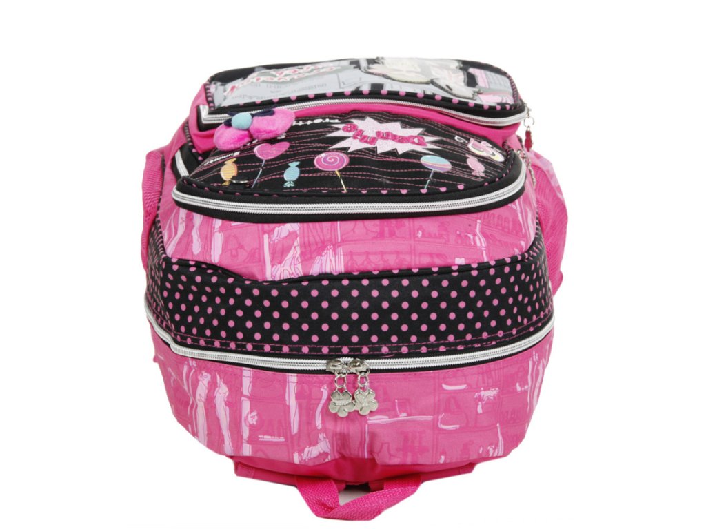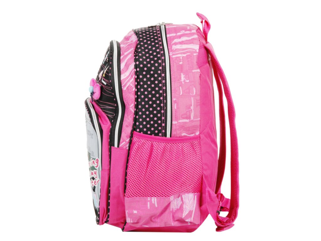 Dívčí trendy batoh francouzské značky Madisson v růžové barvě s moderním potiskem. Batoh lze nosit do školy, vejdou se i desky na učebnice, sešity atd. Je lehký, pohodlný a má mnoho kapes.