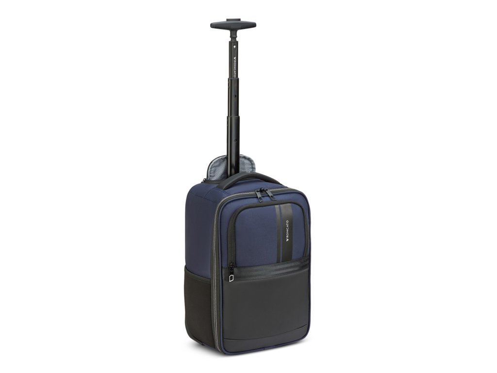 Nadčasový batoh na kolečkách s atypickou výsuvnou rukojetí italské značky Roncato ve velmi zajímavé kombinaci tmavě modré a černé barvy série Metropolitan Travel. Chcete ulehčit vašim zádům? Pak volte batohy na kolečkách, které si můžete vzít i pohodlně na záda a příjemně se nosí. Tento batoh vyhovuje parametrům nízkonákladové letecké společnosti Ryanair. Metropolitan Travel je kolekce velice propracovaných a zároveň lehkých textilních kufrů a batohů, která je navržená pro moderní cestovatele, kteří hledají styl, funkčnost a pohodlí. Díky zajímavému designu jsou tyto batohy a kufry nejen výrazným módním doplňkem, ale zároveň odpovídají nárokům i těch nejnáročnějších cestujících.