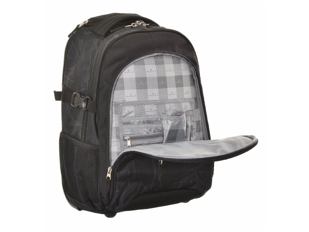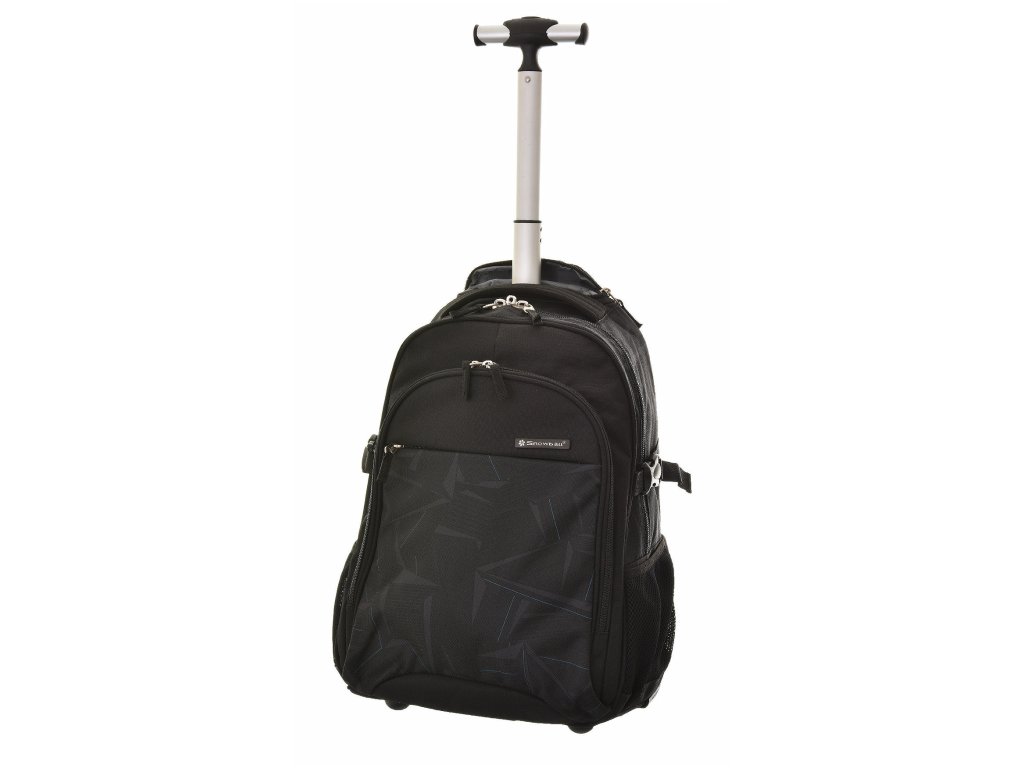 Moderní batoh na kolečkách francouzské značky Snowball v oblíbené černé barvě s čárkovým motivem. Batoh můžete nosit jak na zádech, tak i vozit jako tašku. Spolehlivá velká kolečka a výsuvná rukojeť se postarají o pohodlnou a tichou jízdu. Zkrátka ideální pomocník na cesty, do práce nebo do školy.