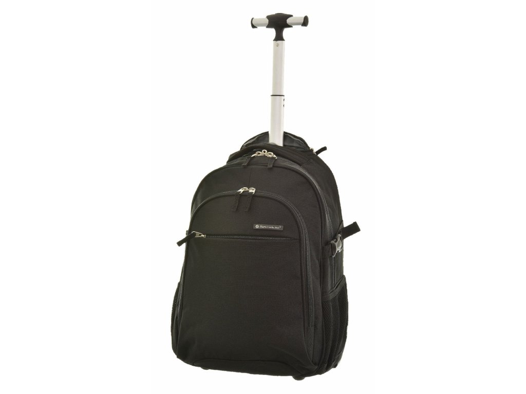 Moderní batoh na kolečkách francouzské značky Snowball v červené barvě. Batoh můžete nosit jak na zádech, tak i vozit jako tašku. Spolehlivá velká kolečka a výsuvná rukojeť se postarají o pohodlnou a tichou jízdu. Zkrátka ideální pomocník na cesty, do práce nebo do školy.