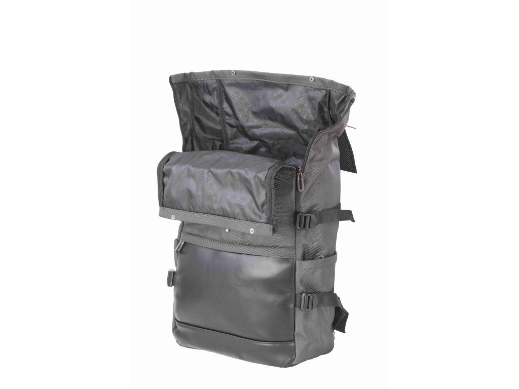 Městský elegantně-sportovní batoh s rolovacím zavíráním od prestižní značky Aeronautica Militare série Typhoon v oblíbené černé barvě. Batoh Aeronautica Militare Typhoon je ideální parťák pro každodenní provoz i kratší cesty, kde chceš mít věci přehledně srovnané a zároveň v bezpečí. Díky roll-up uzavírání si snadno upravíš objem podle aktuální potřeby – ráno prázdnější, odpoledne klidně nacpaný nákupem nebo věcmi do fitka. Design vychází z leteckého stylu značky Aeronautica Militare, takže působí moderně, čistě a trochu „vojensky“ – ale pořád dost civilně na běžné nošení do práce nebo do města. Kvalitní materiál zvládne každodenní zátěž a jen tak se neokouká. Uvnitř najdeš prakticky řešený prostor na notebook, dokumenty i drobnosti, které nechceš lovit po dně. Pohodlné ramenní popruhy a pevná konstrukce zajistí, že se batoh dobře nosí i při plnějším naložení.