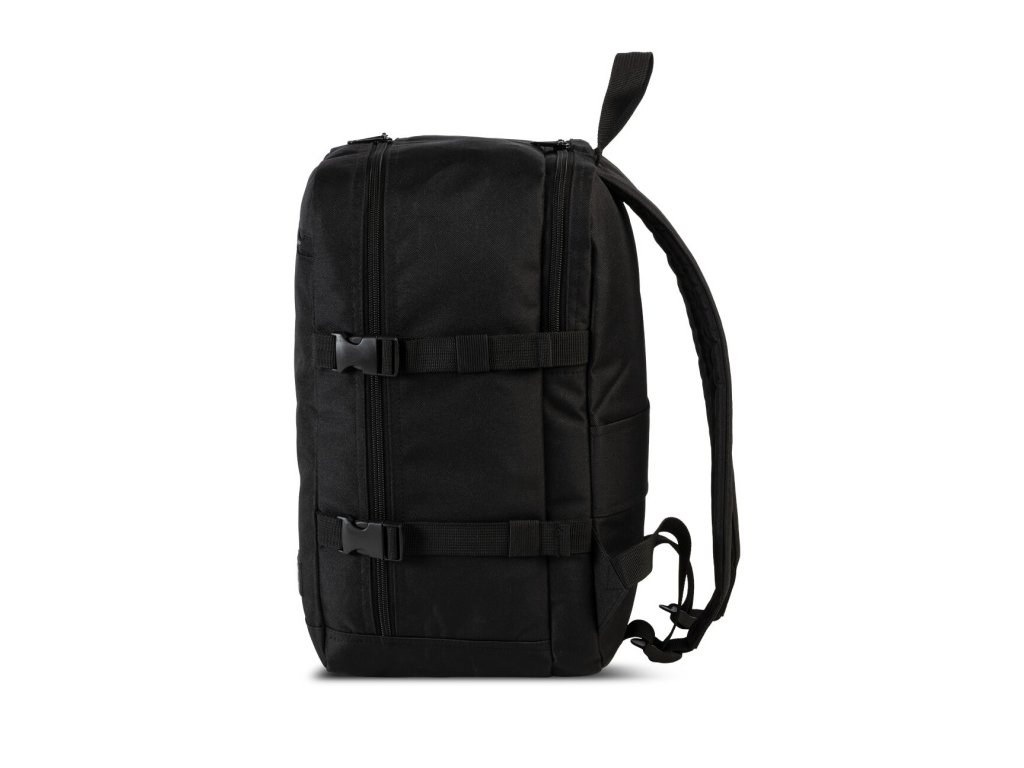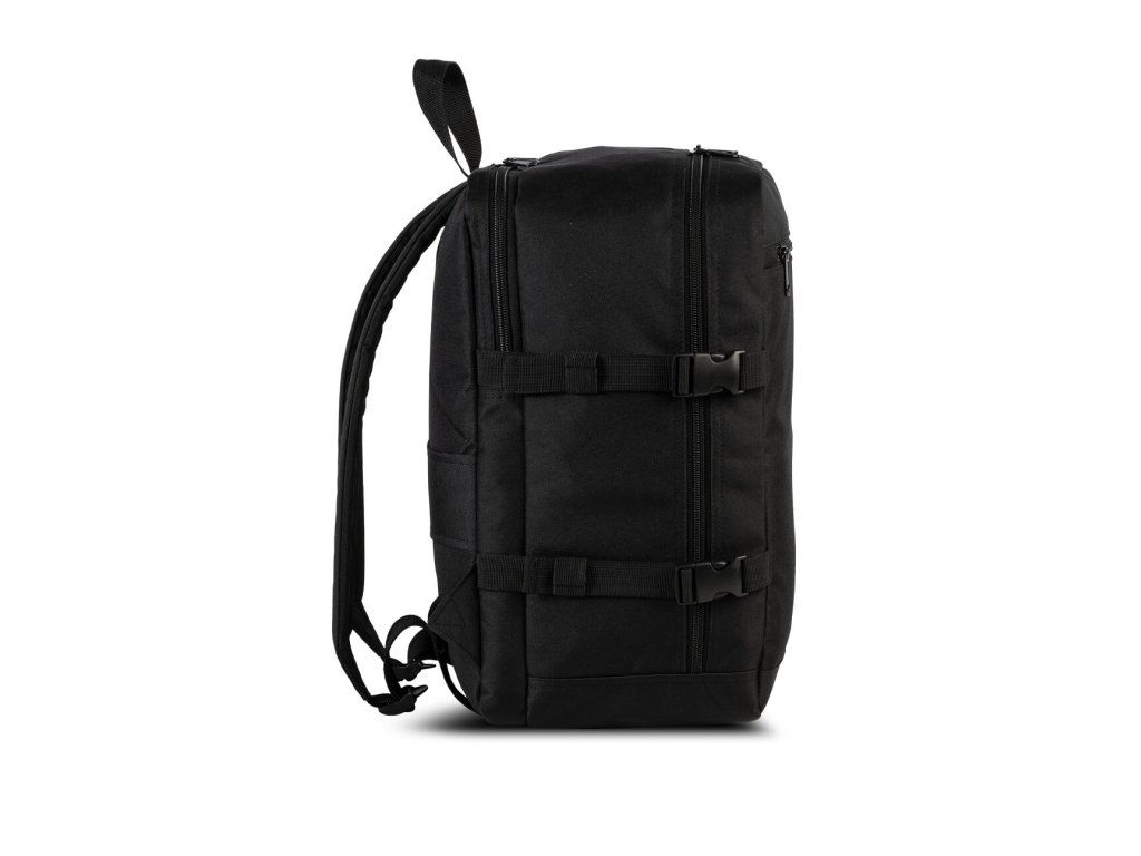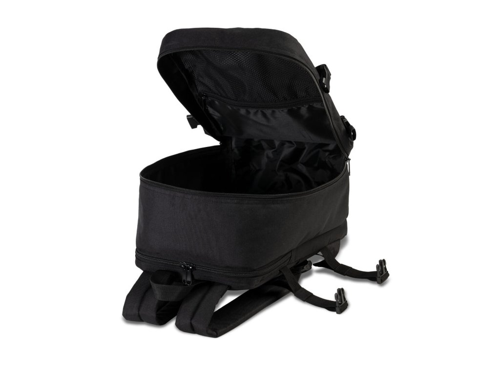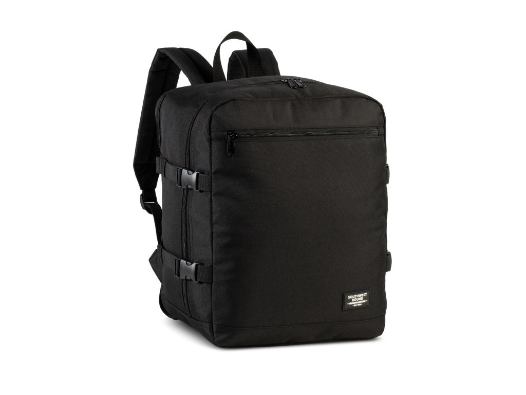 Cestovní multifunkční textilní batoh německé značky Southwest Bound v oblíbené černé barvě a s polstrovanou zadní kapsou na 13" notebook. Toto palubní zavazadlo si můžete vzít s sebou do letadla, jak vyžaduje společnost Ryanair. Má rozměry, které akceptuje většina leteckých společností.