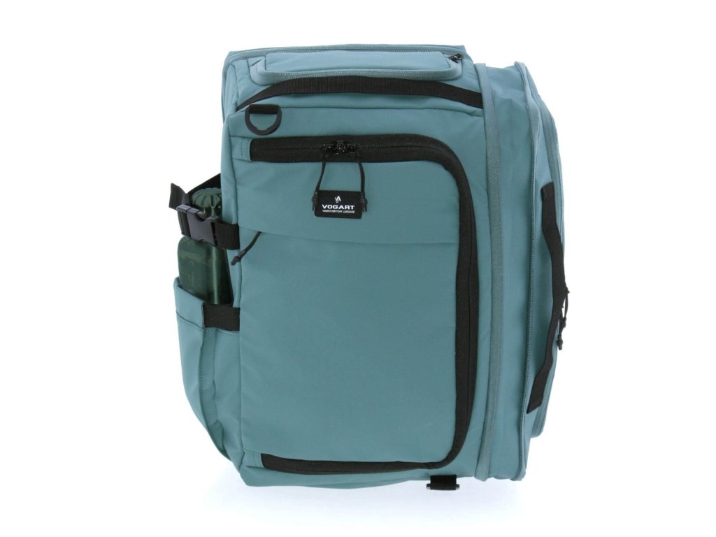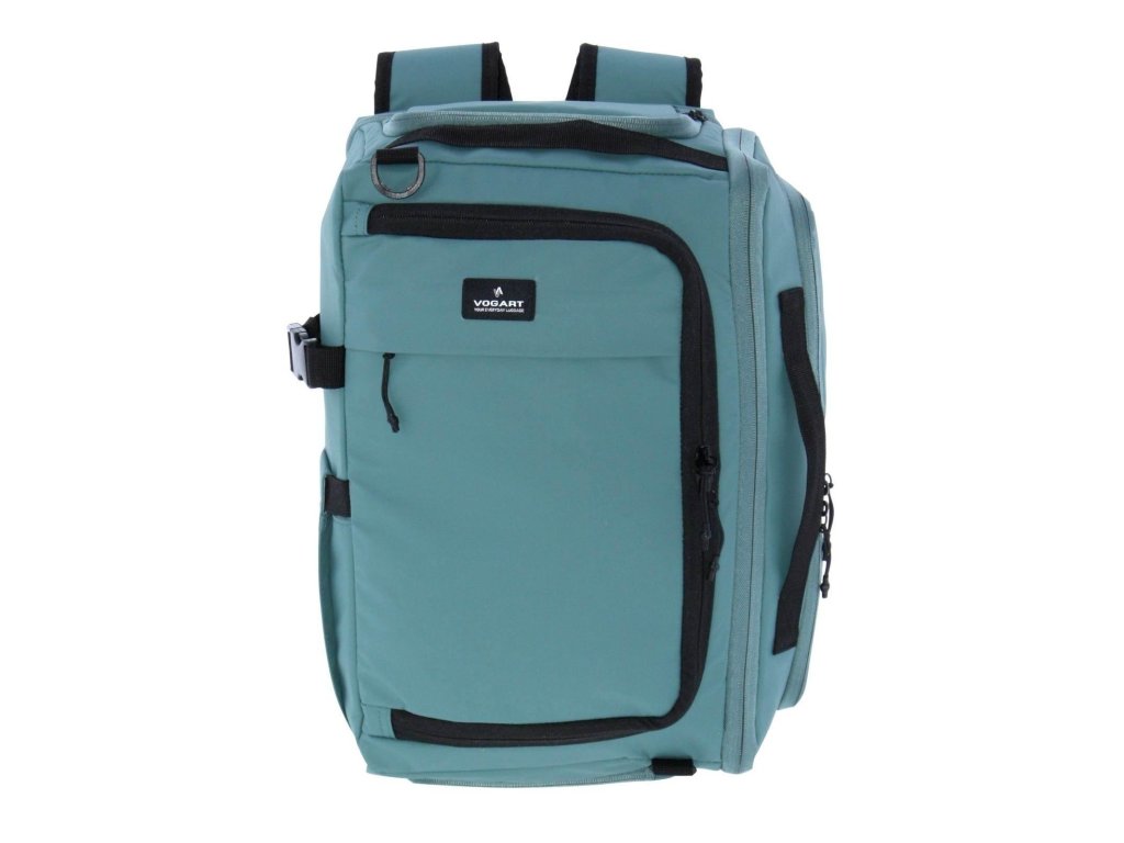 Textilní batoh-taška španělské značky Vogart série Cabinpro v zelenomentolové barvě. Vyrobeno z odolného, vodoodpudivého materiálu Polyesteru reversed. Nabízí několik vnitřních i vnějších kapes, klíčenku a nastavitelné popruhy. Ideální pro letecké cestování díky maximálním a rozšiřitelným rozměrům. Toto palubní zavazadlo si můžete vzít s sebou do letadla, jak vyžaduje společnost Ryanair a Wizz air.