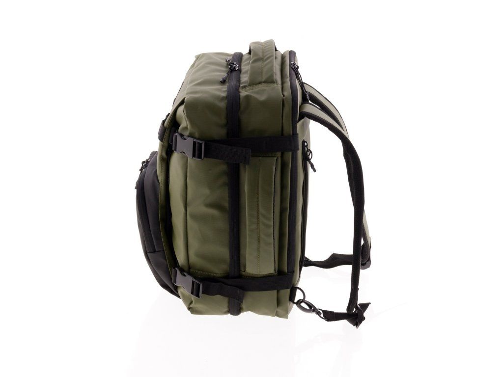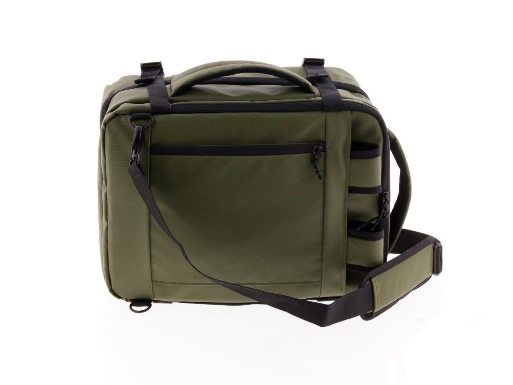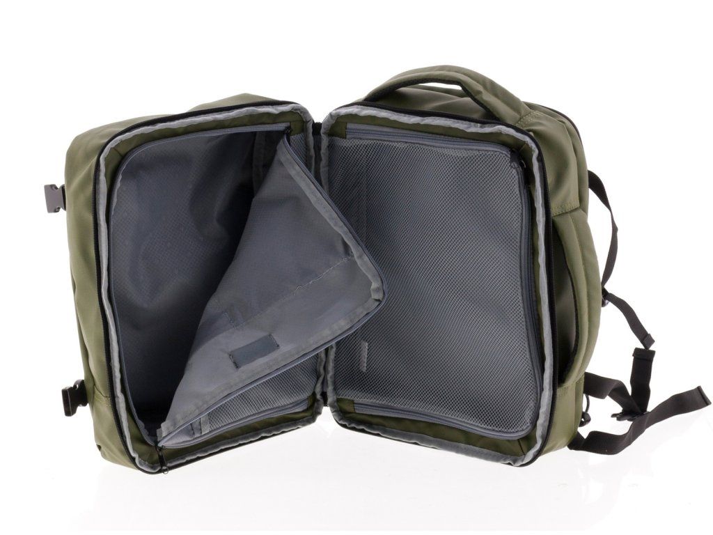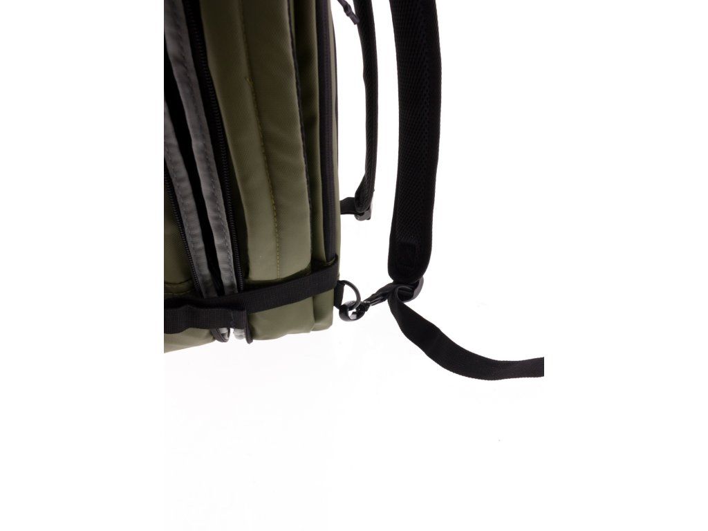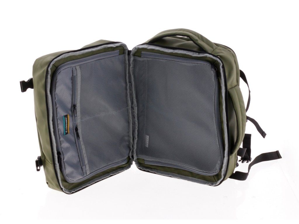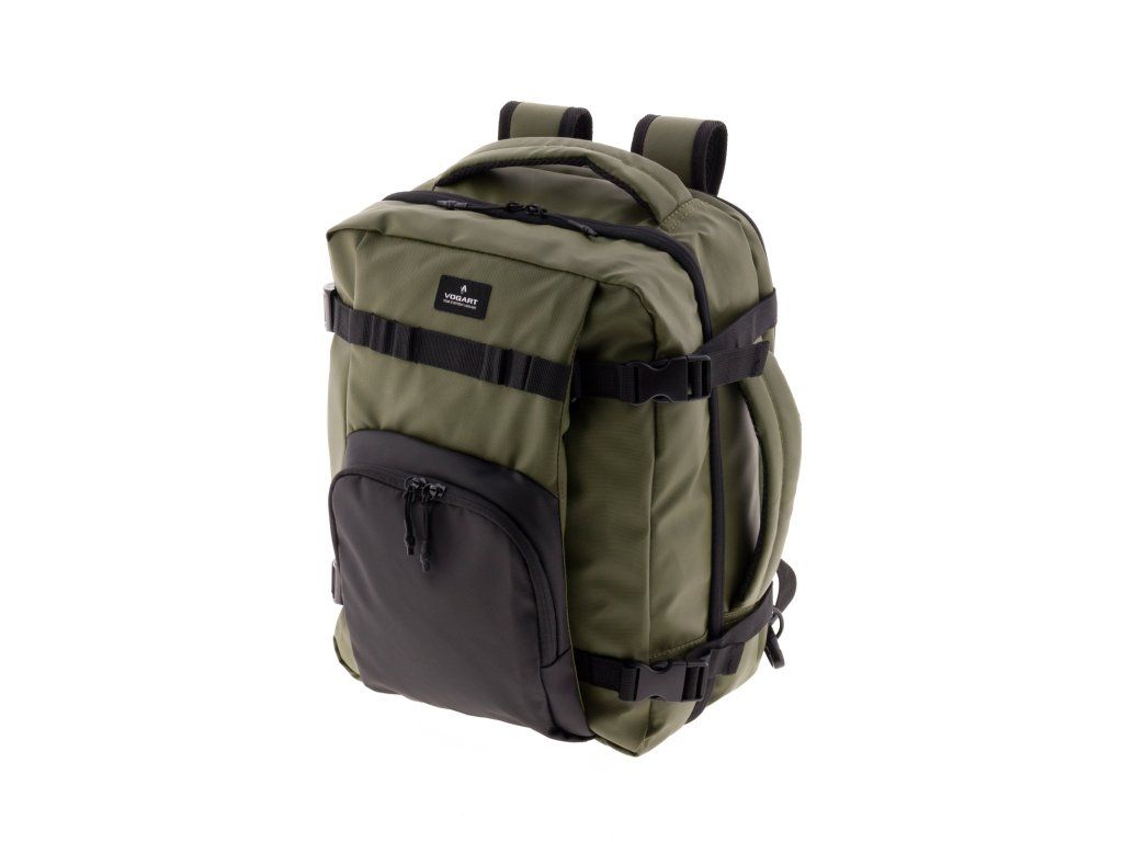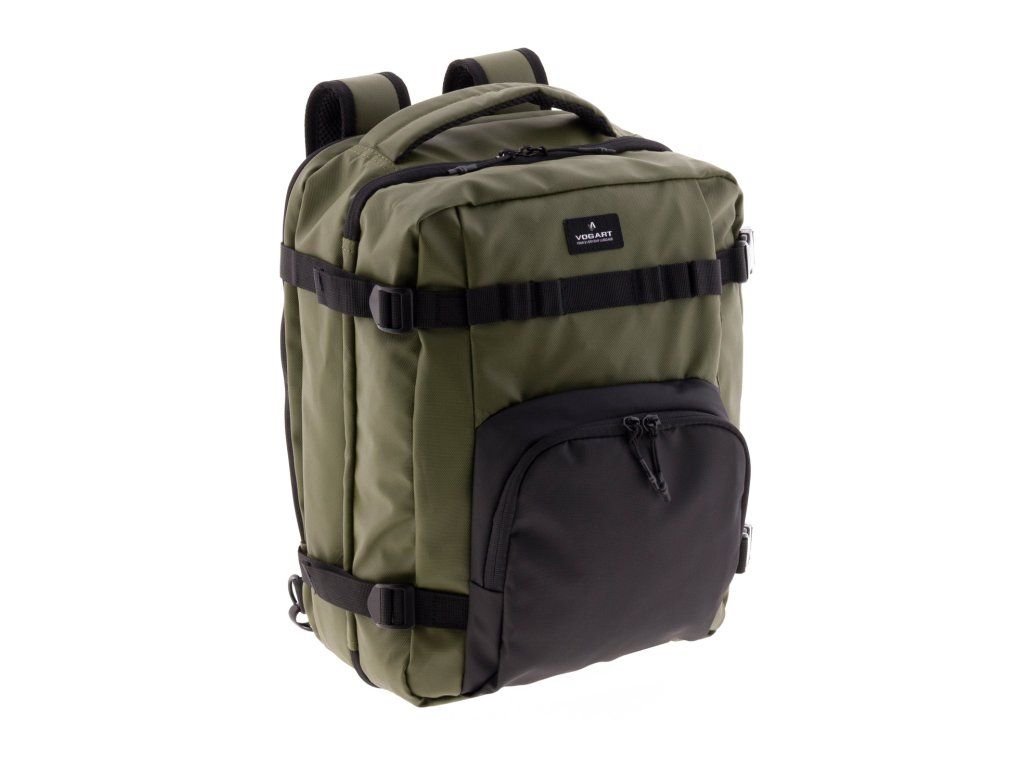 Textilní batoh-taška španělské značky Vogart série Nitro v tmavší zelené barvě. Tato kolekce je Vyrobena z odolného materiálu Polyesteru reversed. Univerzální kousky ideální pro všechny typy cestování. Toto palubní zavazadlo si můžete vzít s sebou do letadla, jak vyžaduje společnost Ryanair a Wizz air.