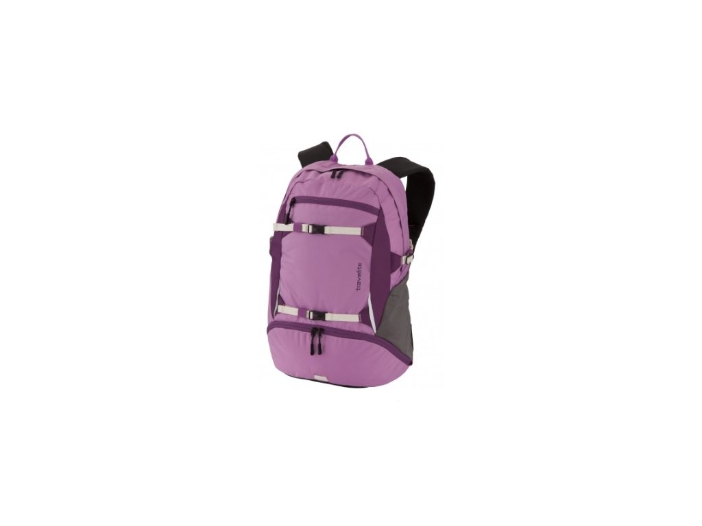 Textilní batoh německé značky travelite v barvě fuchsie.- Textilní madlo.