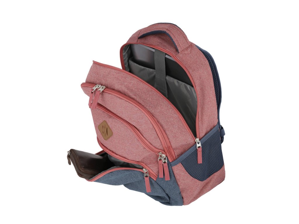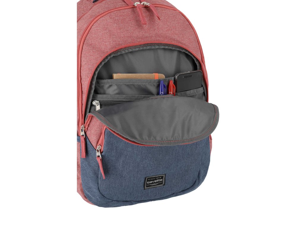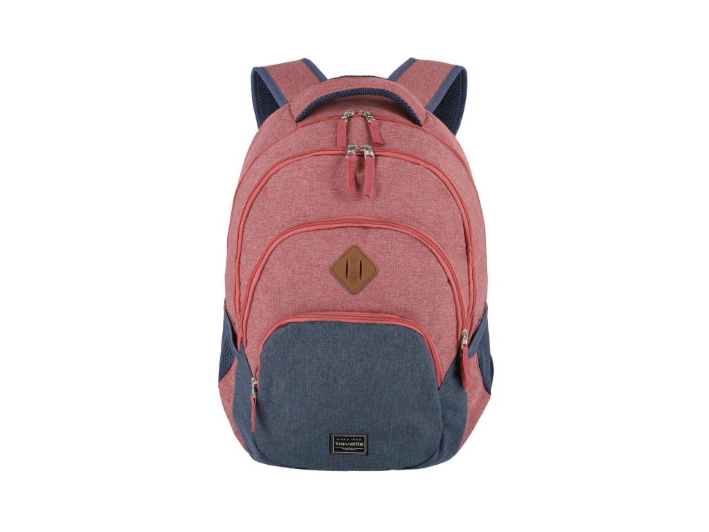 Textilní stylový batoh německé značky travelite v červeno modré barvě.