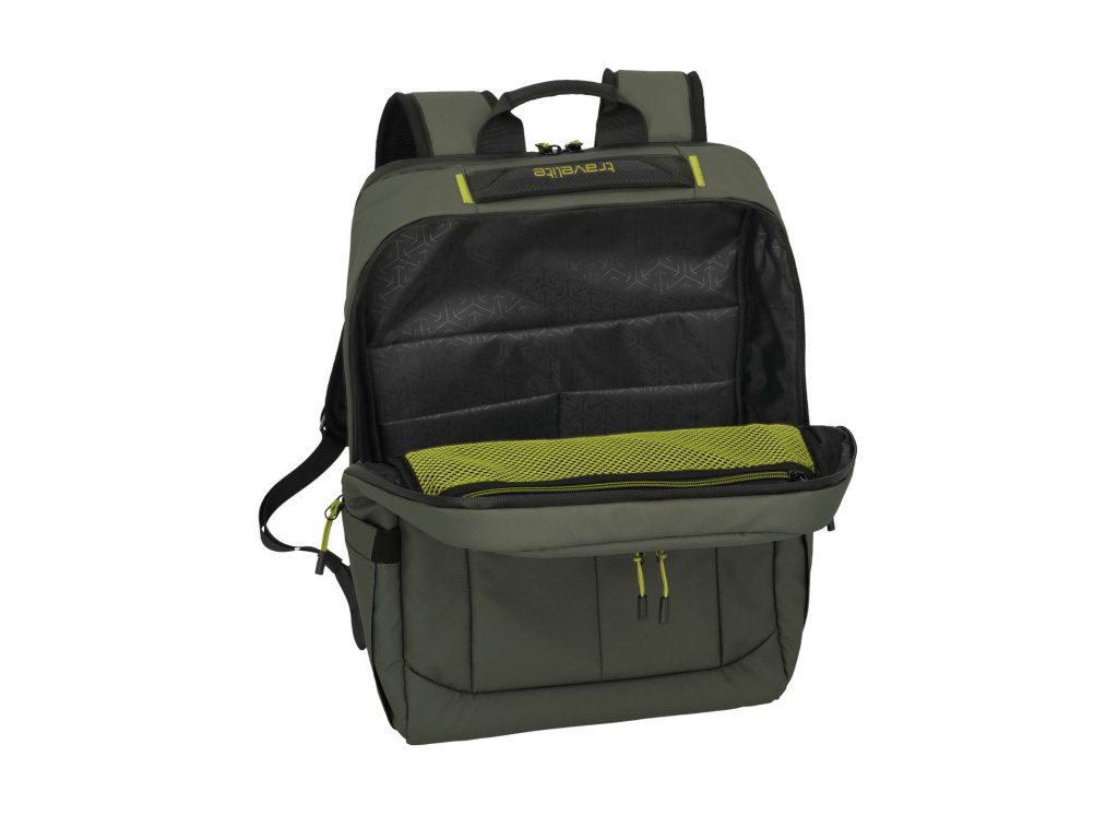 Sportovní batoh s přihrádkou na 15,6" notebook německé značky Travelite série Briize v zajímavé khaki barvě. Lehký a moderně řešený batoh v jednoduchém stylu poskytne ochranu vašich věcí, ať už jdete do města nebo do přírody. Lze jej nasadit na rukojeť cestovního kufru.