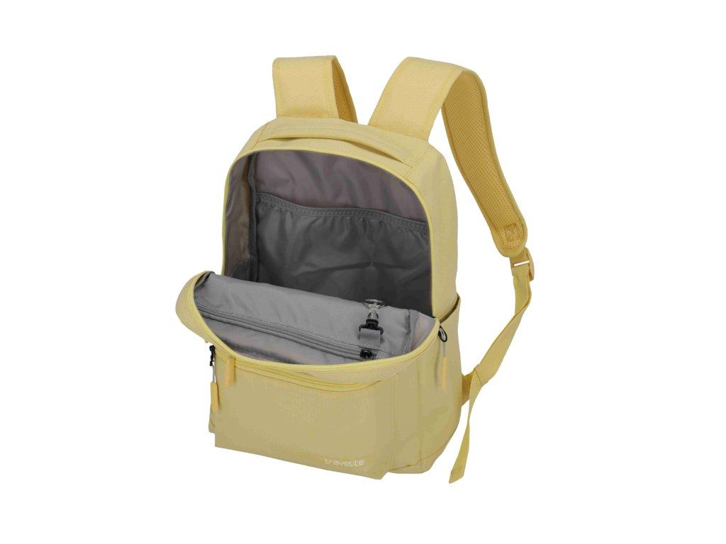 Sportovní batoh německé značky Travelite ve žluté barvě. Odlehčený a moderně řešený batoh v jednoduchém stylu poskytne ochranu vašich věcí, ať už jdete do města nebo do přírody.