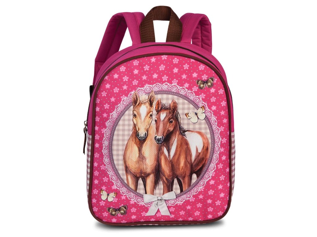 Dětský značkový batůžek s motivem koníci v růžové barvě.- Hlavní kapsa na zip.