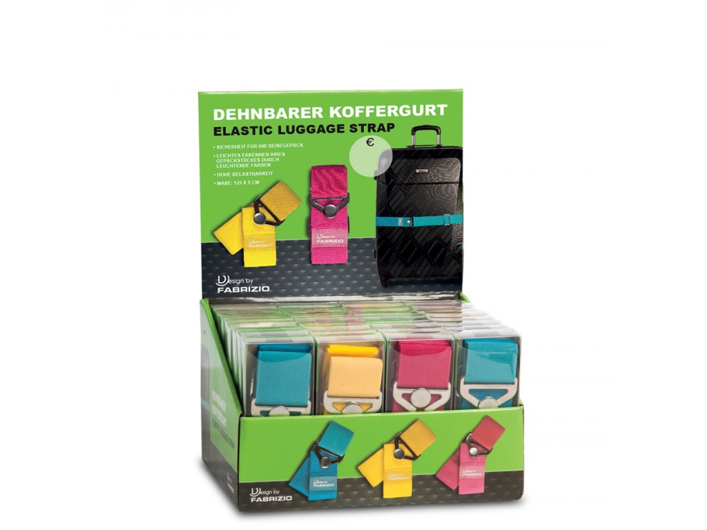 Elastický popruh na cestovní kufr s kovovou sponou německé značky Fabrizio v atraktivní modré barvě. Vhodný pro jakýkoli kufr. Snadno použitelný popruh je elastický, takže je lehké ho obtočit kolem kufru.