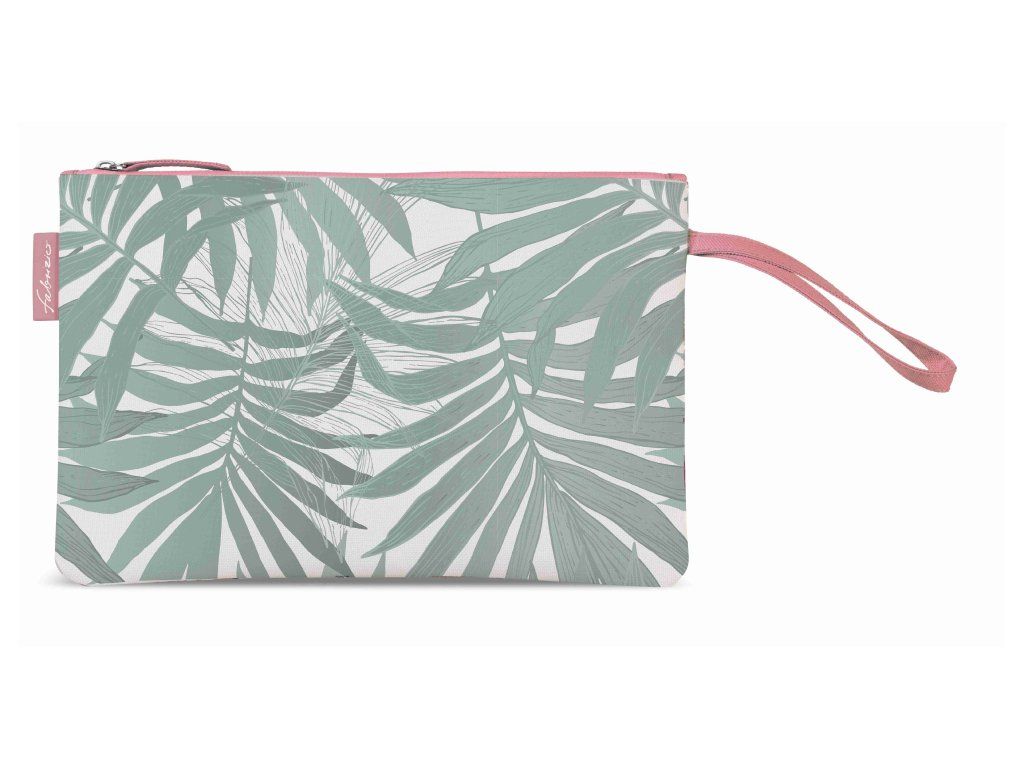 Textilní praktická taška na úschovu plavek německé značky Fabrizio Fun pruhy v kombinaci bílé a šedozelené barvy. Motiv bikiny tašky Fabrizio Fun Listy je inspirován přírodními prvky a tropickými vzory, které dodávají tašce jedinečný a atraktivní vzhled. Vzory listů symbolizují léto, svobodu a radost z pobytu venku. Tuto trendy taštičku na zip využijete především k uložení plavek, suchých či mokrých. Buďte in a pořiďte si tohoto šikovného pomocníka nejen pro vaše plavky, ale i např. na kosmetické potřeby.