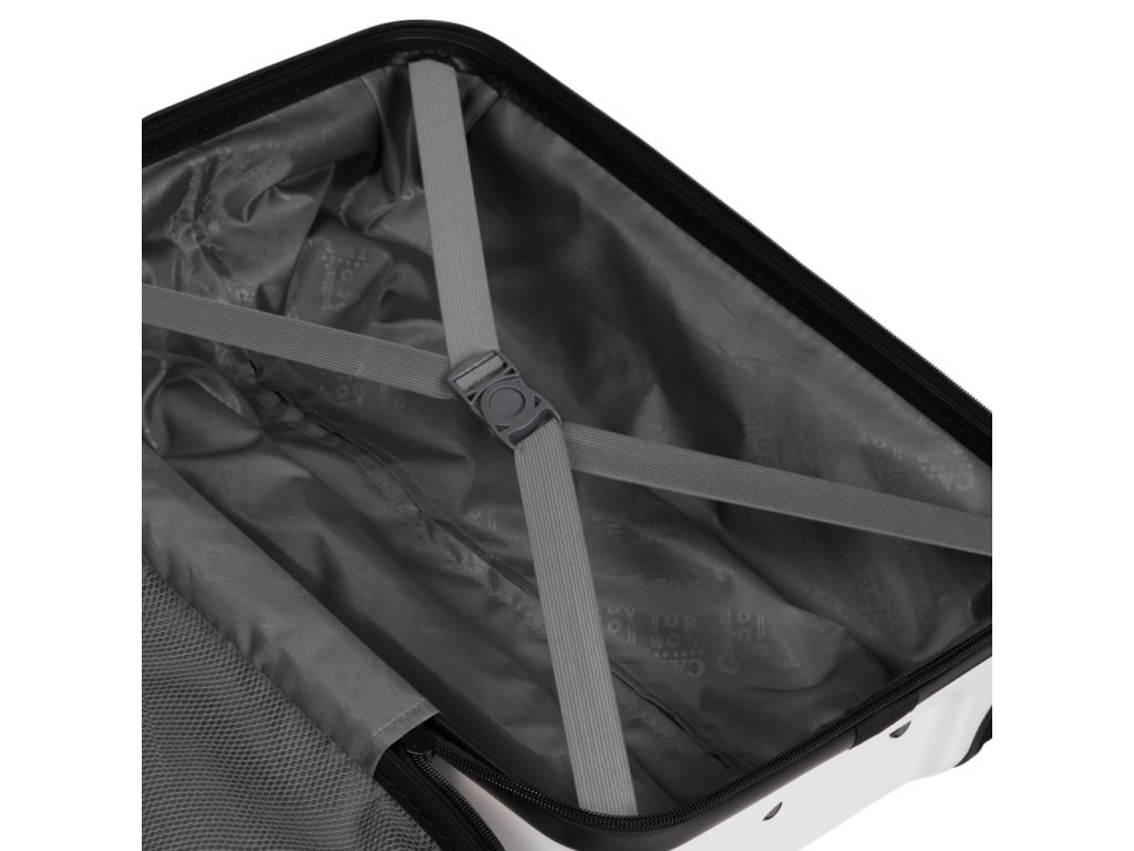 - Skořepinový kabinový kufr s možností klasického otevírání na dvě poloviny