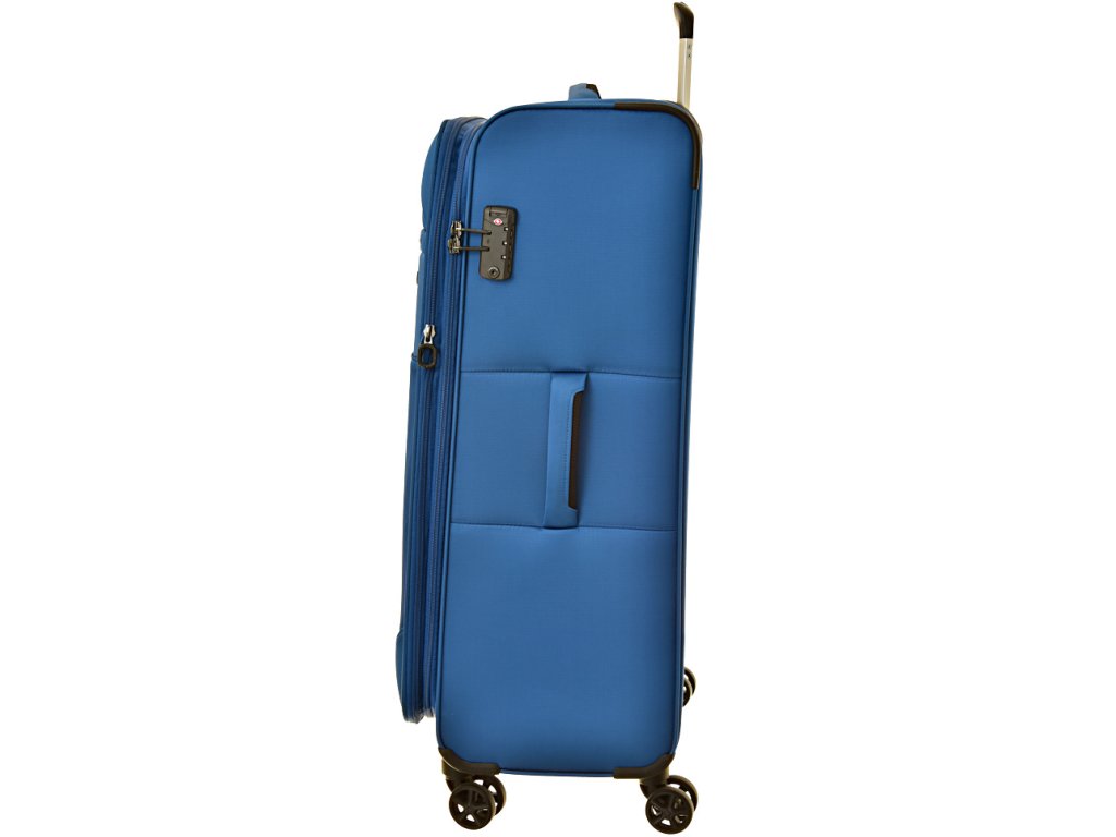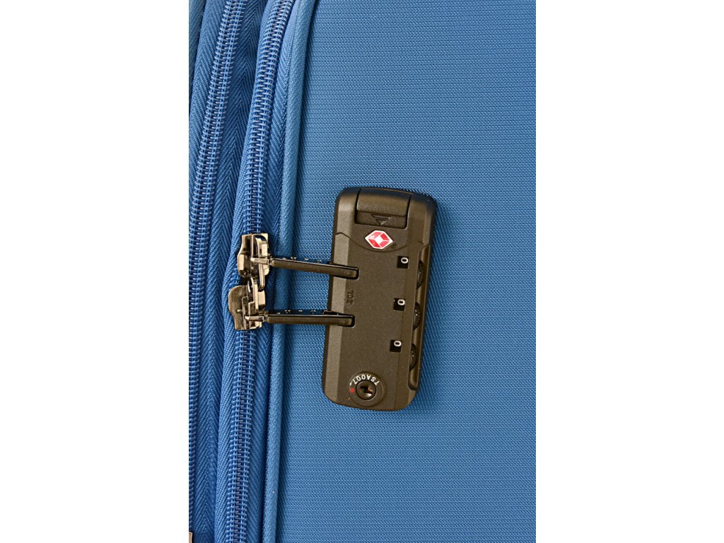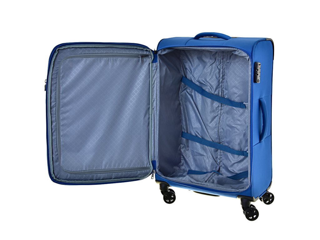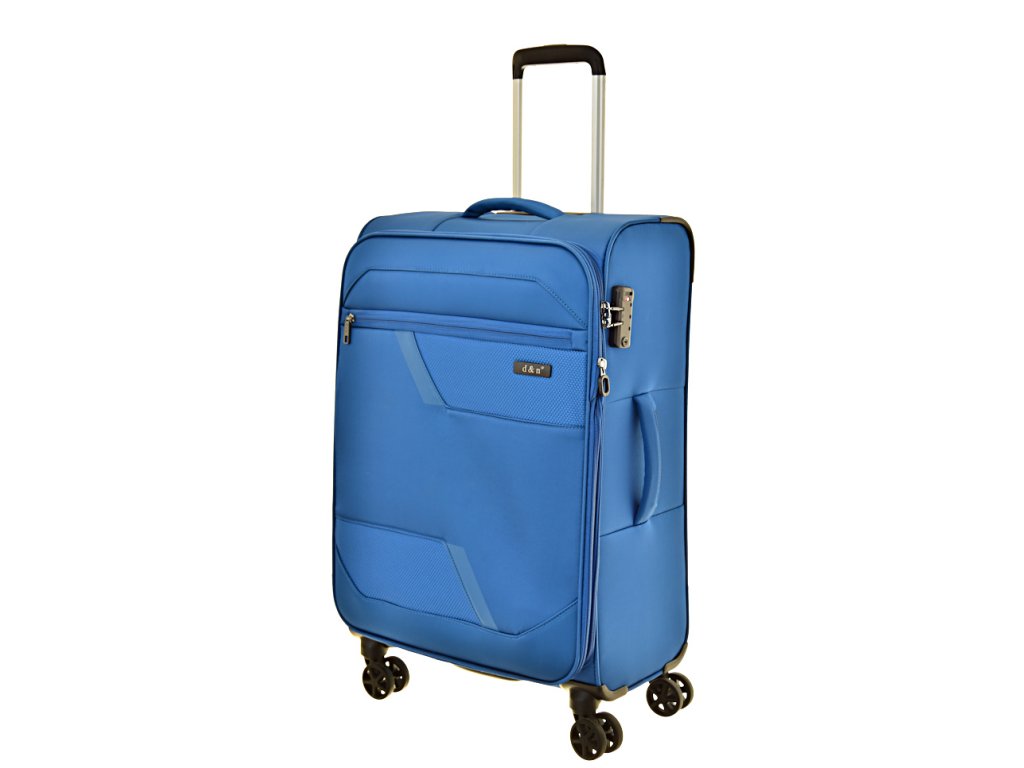 Středně velký textilní cestovní kufr značky D&N v modré barvě. Moderní vzhled, kvalitní zpracování, užité materiály, spolehlivost a funkčnost ocení jistě i náročnější zákazníci, kteří dávají přednost textilním kufrům před plastovými.