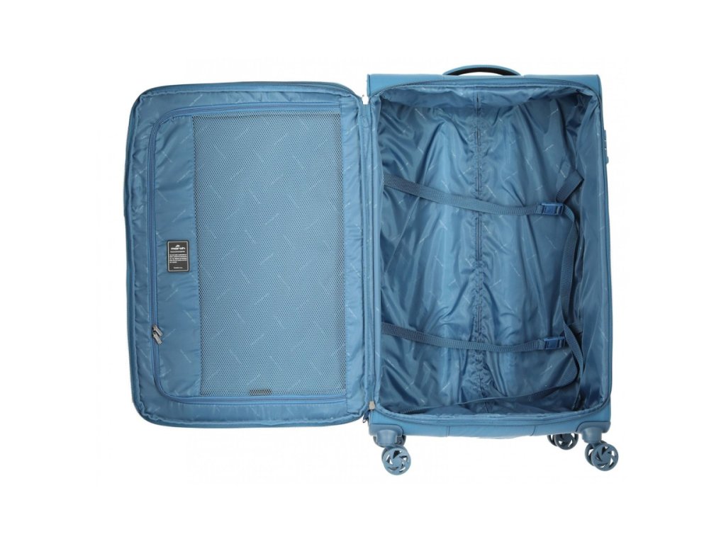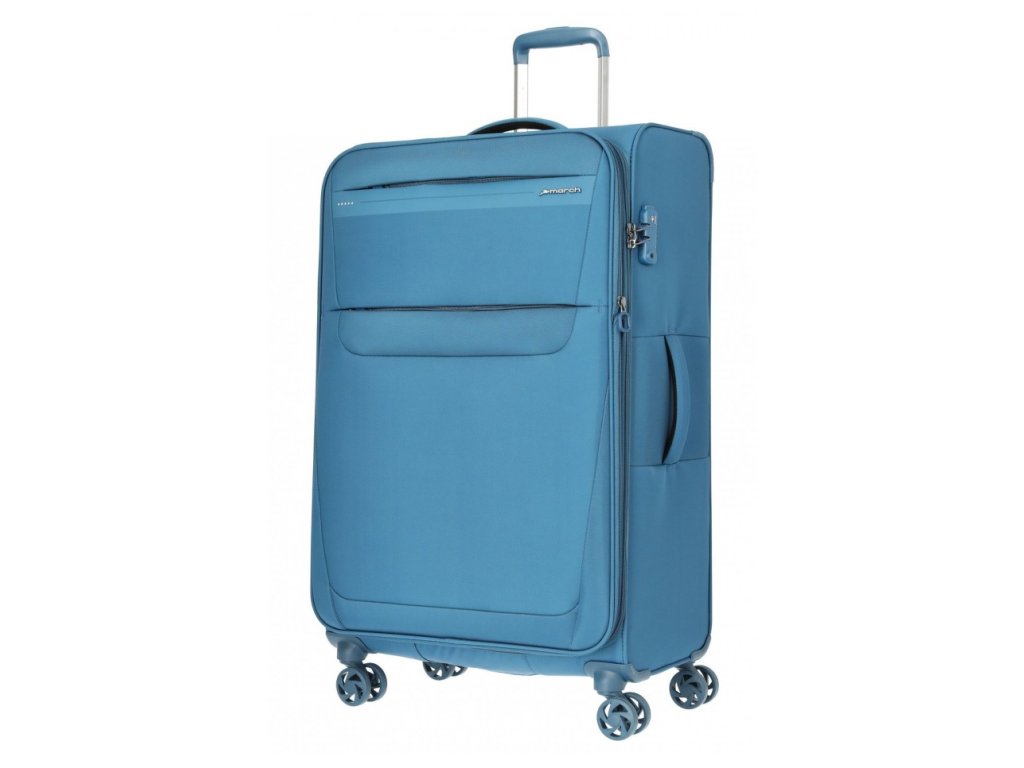 Odlehčený stylový textilní kufr holandské značky March série Aeon 78 cm v petrolejové barvě.