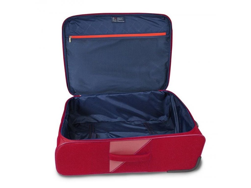 Velký cestovní kufr v moderním designu se dvěma kolečky značky Modo by Roncato v módní červené barvě. Kombinace dvou materiálů, polyesteru a nylonu, činí z tohoto kufru opravdu velmi hezké zavazadlo a celkově módní záležitost. Vybavte se stylově na cesty.