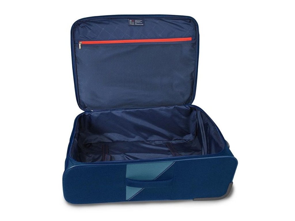 Středně velký cestovní látkový kufr v moderním designu se dvěma kolečky značky Modo by Roncato v atraktivní tmavě modré barvě. Kombinace dvou materiálů, polyesteru a nylonu, činí z tohoto kufru opravdu velmi hezké zavazadlo a celkově módní záležitost. Vybavte se stylově na cesty.