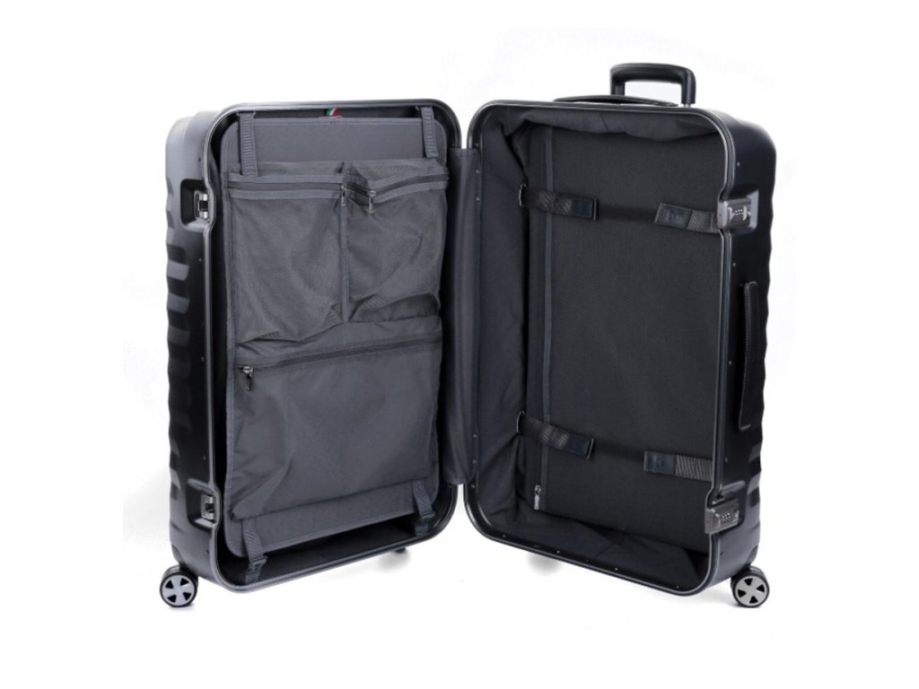 špičkový cestovní kufr italské značky Roncato v černé barvě. Tento luxusní cestovní kufr se může pyšnit titulem - král mezi kufry. Je vyroben z nejkvalitnějších materiálů a osazen detaily z pravé italské kůže. Dopřejte si luxusní a přepychové zboží a vybavte se kvalitně na cesty.