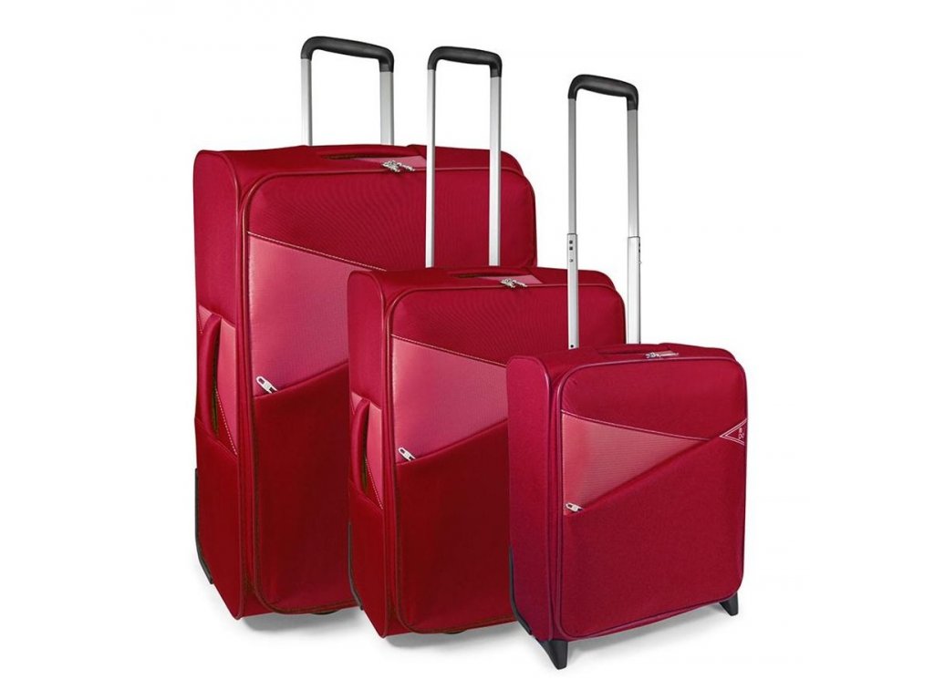 Set 3 ks textilních cestovních kufrů značky Modo by Roncato v atraktivní červené barvě. Kombinace dvou materiálů, polyesteru a nylonu, činí z tohoto kufru opravdu velmi hezké a funkční zavazadlo a celkově módní záležitost. Vybavte se stylově na cesty.