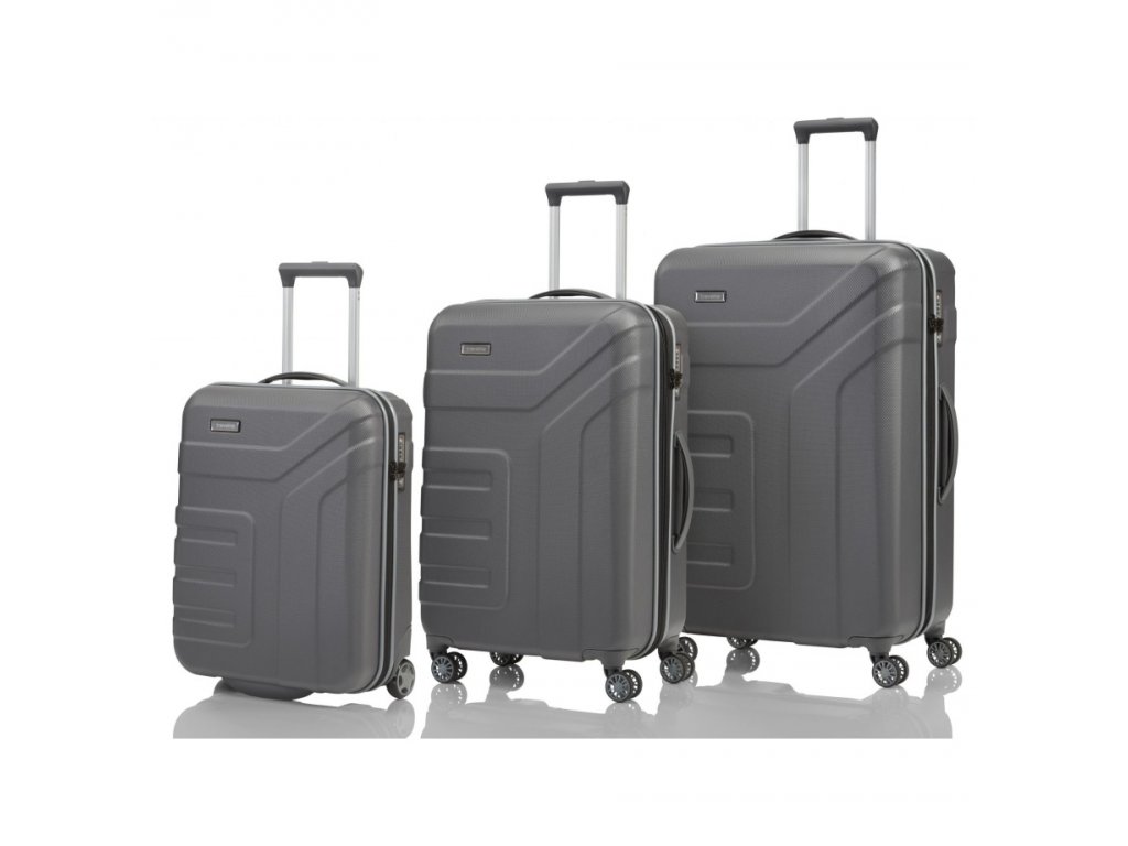 Set 3 ks plastových cestovních kufrů německé značky Travelite v antracitové barvě. Malý kufr má dvě kolečka, větší velikosti mají kolečka čtyři. Pohodlí a spolehlivost na cestách zažijete s odolnými plastovými kufry Travelite. Vydejte se vstříc dobrodružství s těmito moderními zavazadly.
