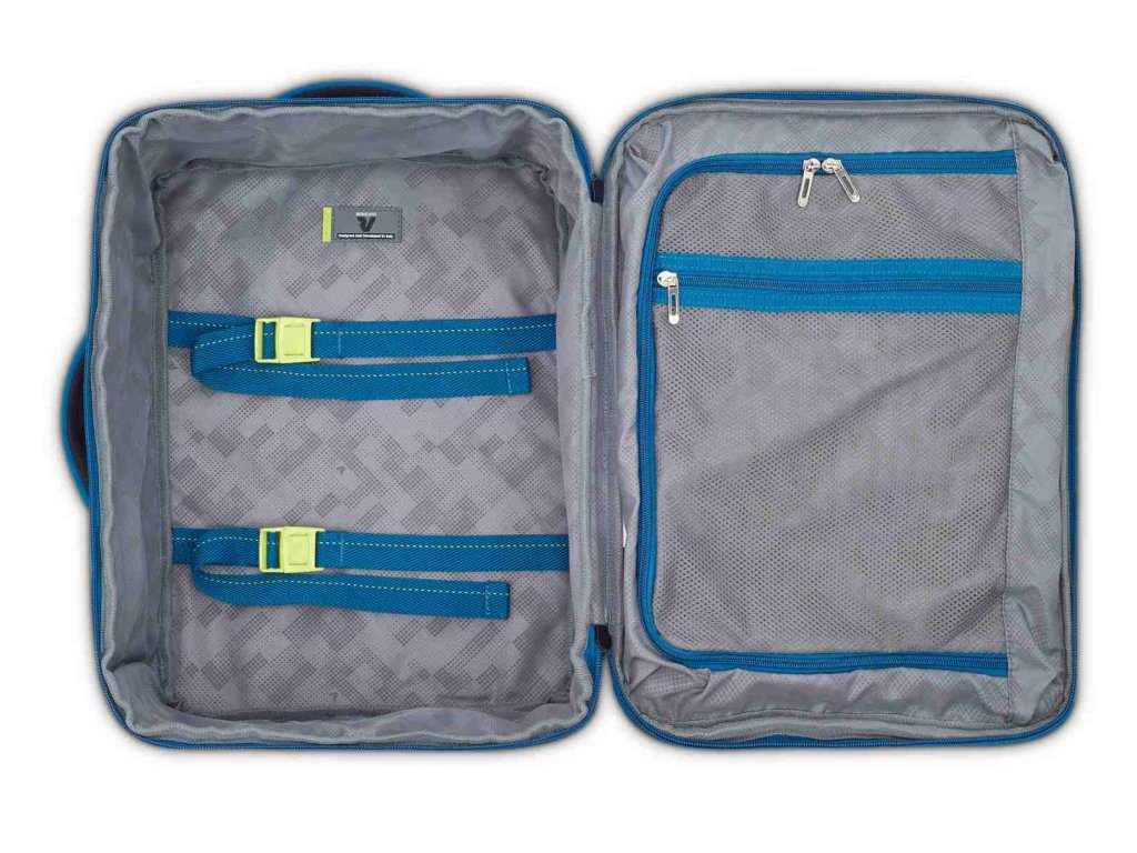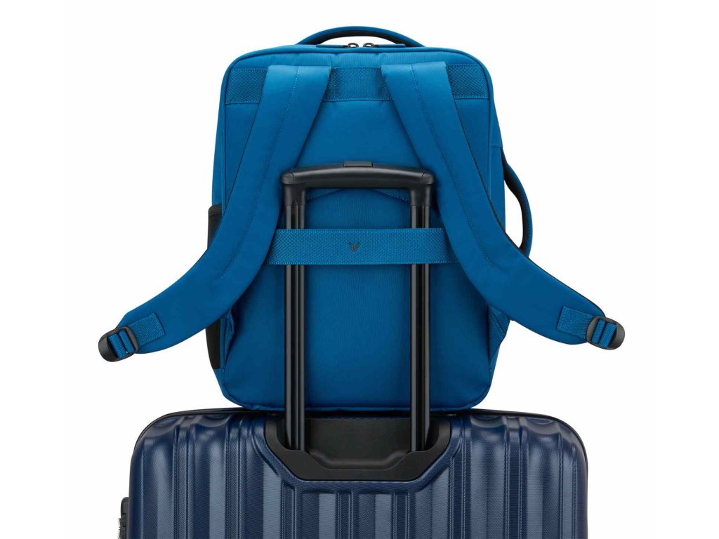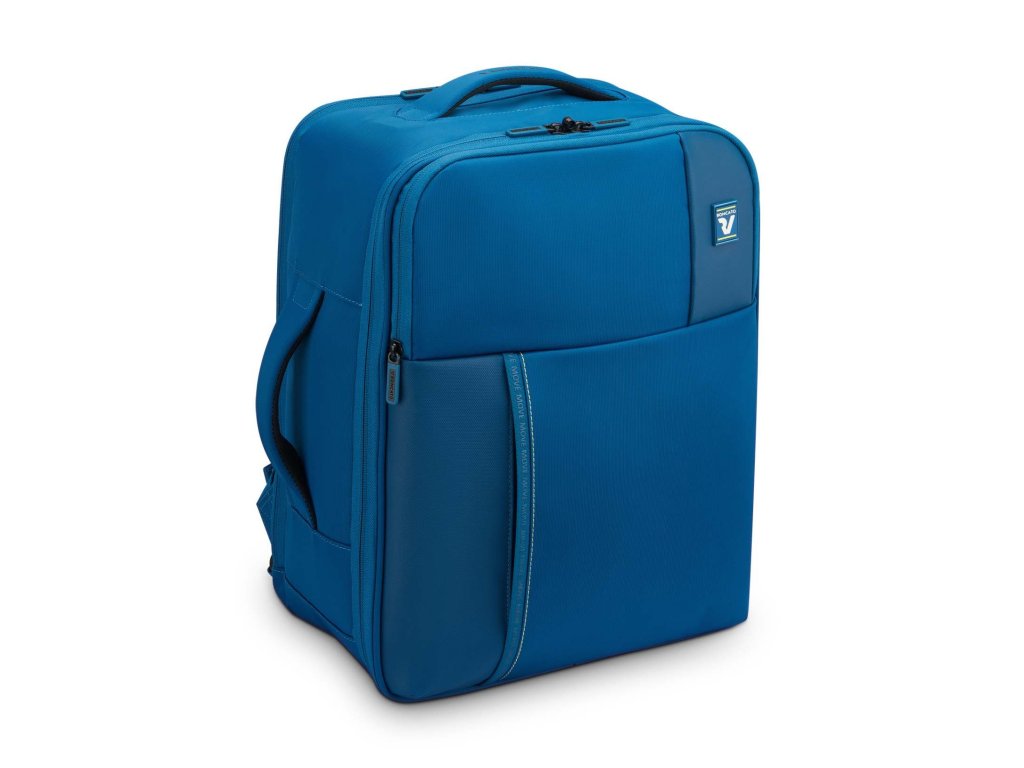 Cestovní multifunkční textilní batoh italské značky Roncato v modré barvě série Move Soft. Toto palubní zavazadlo si můžete vzít s sebou do letadla, jak vyžaduje společnost Ryanair - Wizz air. Má rozměry, které akceptuje většina leteckých společností. Inspirace městským stylem a street artem, tato kolekce je ideální pro uspokojení nejnáročnějších cestovatelů, kteří kromě funkčnosti jsou pozorní k módě a stylu.