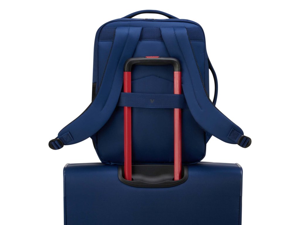 Cestovní multifunkční textilní batoh italské značky Roncato v modré barvě série Move Soft. Toto palubní zavazadlo si můžete vzít s sebou do letadla, jak vyžaduje společnost Ryanair - Wizz air. Má rozměry, které akceptuje většina leteckých společností. Inspirace městským stylem a street artem, tato kolekce je ideální pro uspokojení nejnáročnějších cestovatelů, kteří kromě funkčnosti jsou pozorní k módě a stylu.